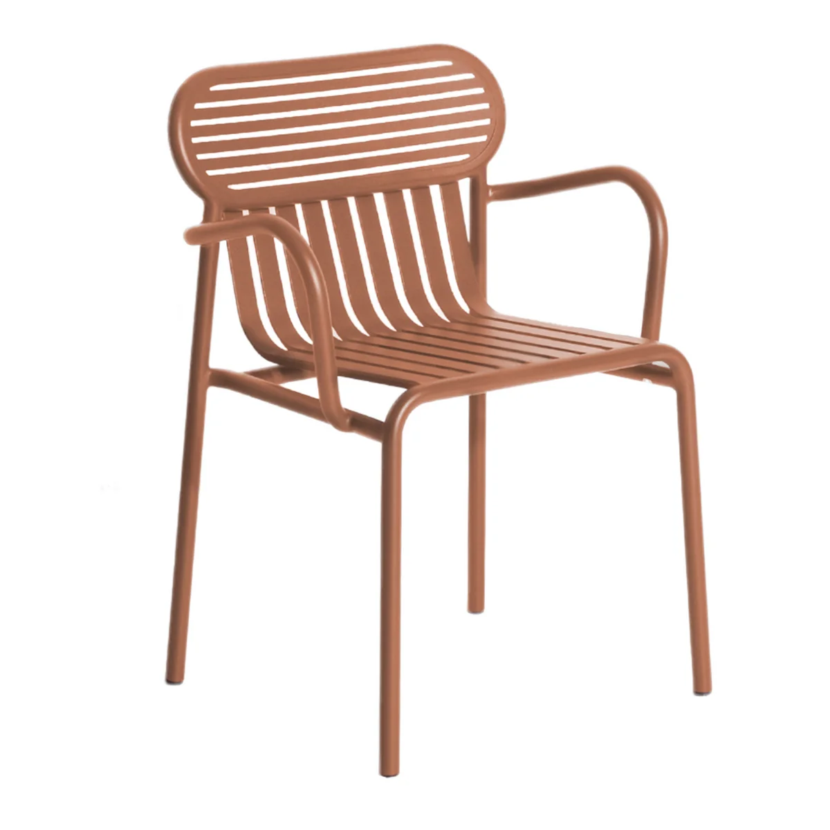 Tegelijkertijd biedt de lamellenstructuur praktische eigenschappen, want door de groeven kan regenwater snel en betrouwbaar weglopen zonder plassen te vormen. Gemaakt van aluminium is de stoel ook bijzonder goed bestand tegen alle weersomstandigheden.