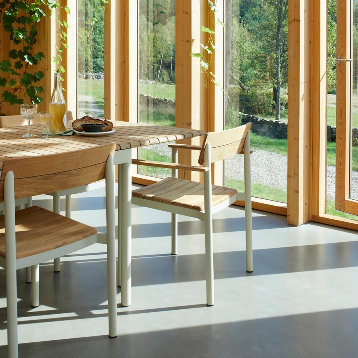 De Pelagus stoel van Note Design Studio voor de Deense fabrikant Skagerak maakt indruk met zijn eigentijdse, sierlijke uitdrukking. De robuuste stoel biedt veel comfort voor lange diners aan tafel. De teakhouten rugleuning en zitting en het gepoedercoate aluminium frame kunnen op verschillende manieren worden gebruikt. Hij is licht genoeg om gemakkelijk te verplaatsen. Bovendien kunnen de Pelagus stoelen op elkaar gestapeld worden dankzij hun slanke ontwerp.