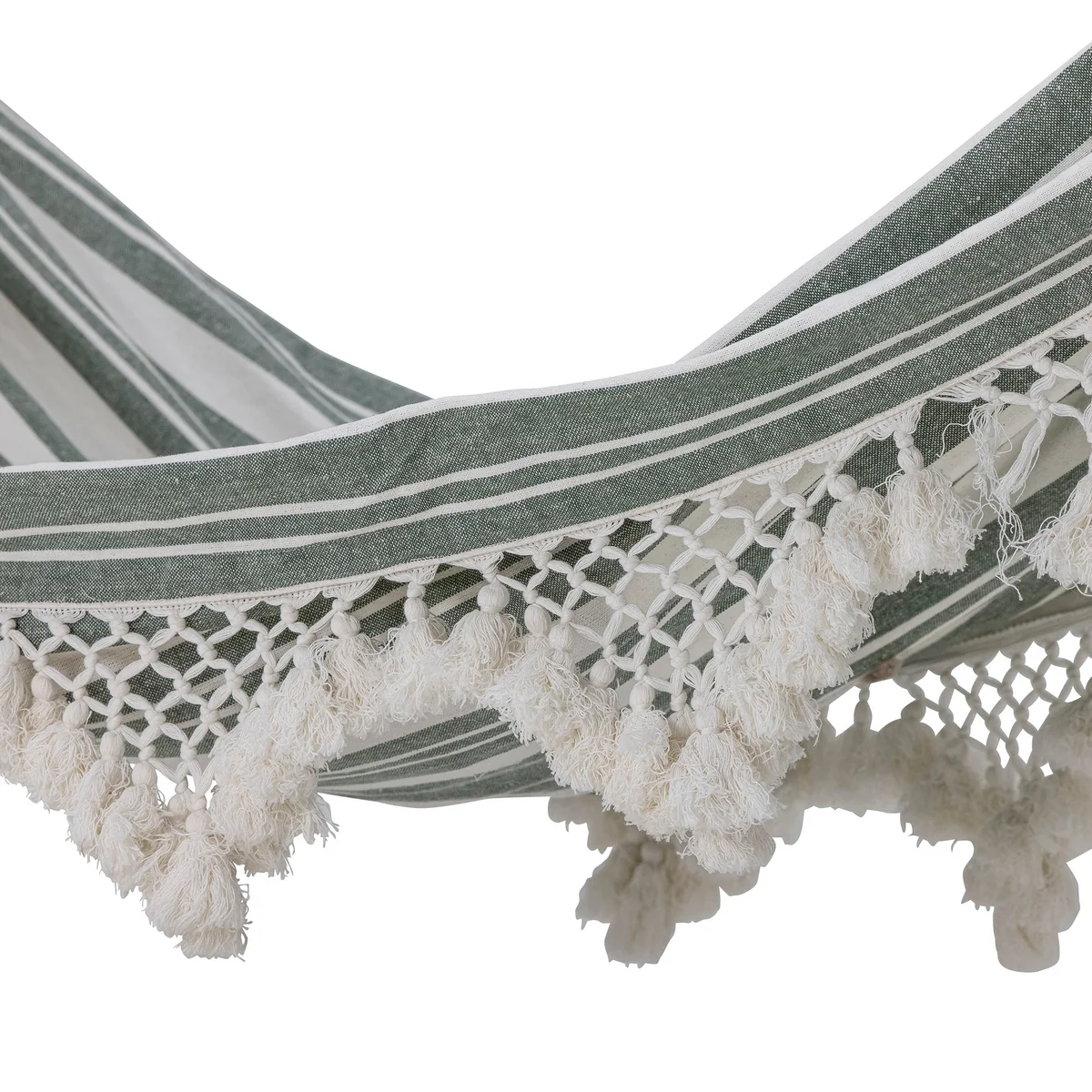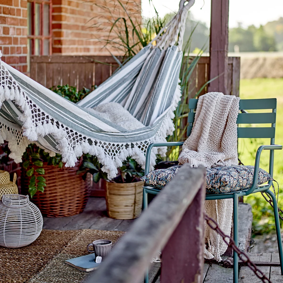 De Cruz hangmat van Bloomingville is een gezellig detail in de tuin en perfect voor warme zomerdagen. De hangmat is gemaakt van katoen in een groene tint en heeft kleine mooie details aan de zijkanten.