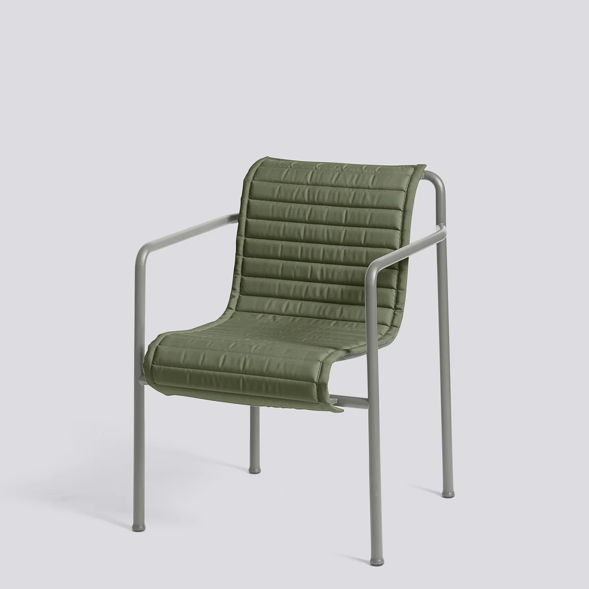 Met de Palissade Quilted Cushion van Iskos-Berlin voor HAY is de Dining Armchair Palissade & Dining Armchair uit de gelijknamige collectie van Erwan Ronan Bouroullec nu nog comfortabeler. De gewatteerde bekleding in verschillende bijpassende kleuren bestaat uit een 15 mm dikke schuimvulling en een hoes van polypropyleen. Dit maakt het weerbestendig, waterdicht en robuust. Zelfs zonnestralen kunnen het kussen niet verbleken.