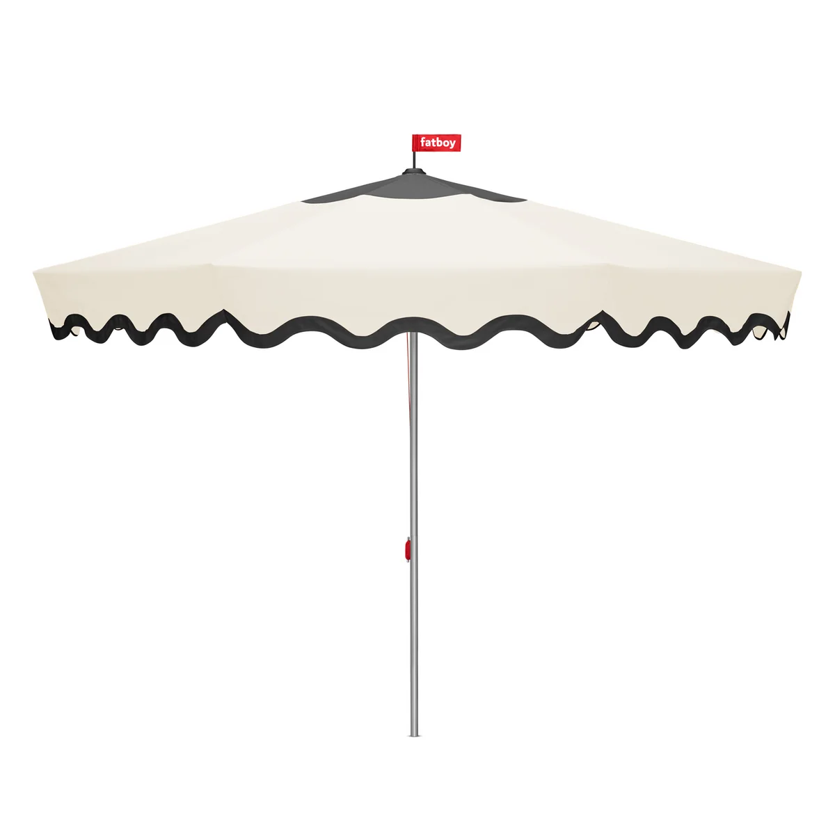 Met een royale diameter van 3,5 meter biedt de kleurechte polyester stof aangename schaduw en optimale bescherming tegen UV-stralen. Het materiaal is ook water- en vuilafstotend. Het stevige aluminium frame zorgt voor stabiliteit, terwijl de meegeleverde beschermhoes en de opvallende Fatboy vlag het ontwerp afmaken.