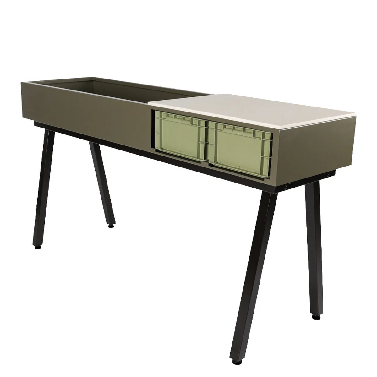 Met zijn elegante, weloverwogen ontwerp creëert het station een harmonieus Gardenworks Het station creëert een harmonieus samenspel van functionaliteit en esthetiek. Het past in de meest uiteenlopende woonsituaties - van balkons en binnenruimtes in de stad tot ruime tuinen op het platteland - en verbetert deze zichtbaar. Het plantstation nodigt uit tot het beleven van bewuste momenten in de natuur: van samen koken in de buitenlucht tot het observeren van de seizoenen. Het is gemaakt van gegalvaniseerd en gepoedercoat staal, gepoedercoat aluminium en gesinterd steen en biedt duurzame kwaliteit en duurzaamheid. Het is ontworpen door ontwerper Marcel Sloots, die functionaliteit en design consequent combineert.