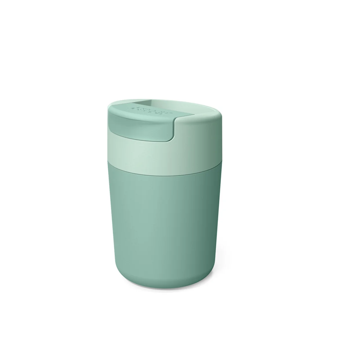 De Sipp reisbeker met scharnierend deksel van Joseph Joseph is de ideale metgezel voor onderweg. Of het nu voor een hete koffie in de ochtend is, thee in de middag of een ander drankje - Sipp inhoud 340 ml. De mok met lekvrij schroefdeksel heeft een scharnierend deksel. Dit beschermt het drinkgedeelte en zorgt voor een betere hygiëne. De mok ligt lekker in de hand en heeft een anti-slip handvat.