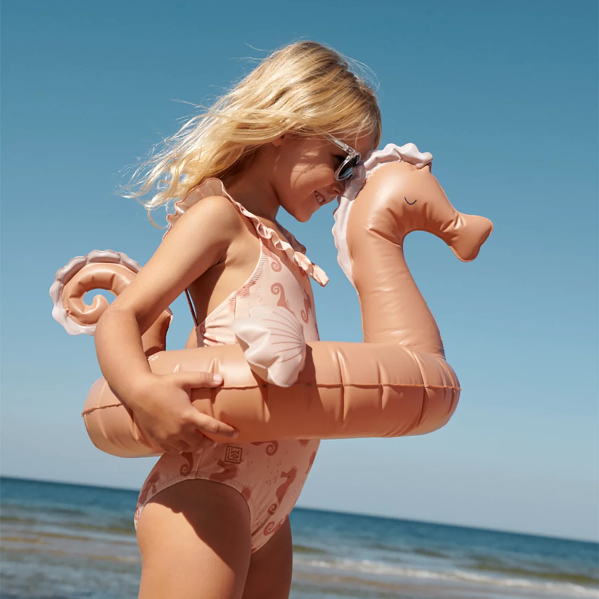 De Phoebe zwemring van LIEWOOD zorgt voor stijlvol waterplezier op warme dagen. Ontworpen in de speelse vorm van een zeepaardje en in de zachte kleur Pale Tuscany, nodigt hij je uit om te ontspannen op het water. Of het nu bij het zwembad, het meer of het strand is - deze zwemring is een charmant accessoire voor kleine waterratten.