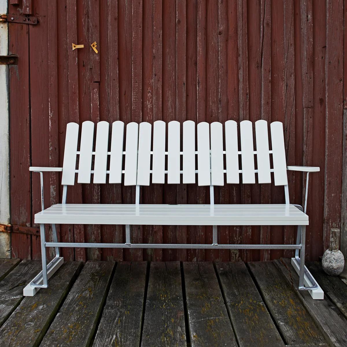 De robuuste 6 tuinbank met rugleuning van Grythyttan maakt deel uit van onze klassieke serie, ontworpen door Örjan Lindqvist in de jaren 1950. Dankzij de constructie van staal en massief hout is het nu al een tijdloze klassieker van functionalisme die de tand des tijds zal doorstaan.