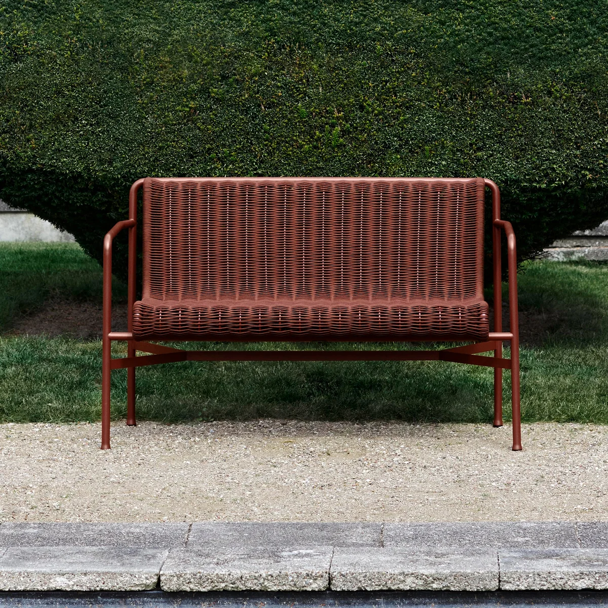 De Palissade Cord Dining Bench door HAY & ontworpen door Ronan Erwan Bouroullec, zet de opvallende, symmetrische designtaal van de Palissade collectie voort en interpreteert deze met een zachtere esthetiek. Het gepoedercoate stalen frame zorgt voor stabiliteit en duurzaamheid, terwijl de handgeweven zitting van gerecycled polyester koord in een gecoördineerd kleurenschema comfort en duurzaamheid combineert. Dankzij deze combinatie van een duidelijke designtaal en aangenaam zitcomfort kan de bank gemakkelijk worden geïntegreerd in een grote verscheidenheid aan buitenomgevingen - van cafés en restaurants tot tuinen, terrassen en balkons. Met zijn tijdloze uitstraling en veelzijdige kleurenpalet is de Palissade Cord Dining Bench een blikvanger in elke buitenruimte en biedt ook uitnodigende zitplaatsen voor gezellig samenzijn in de buitenlucht.