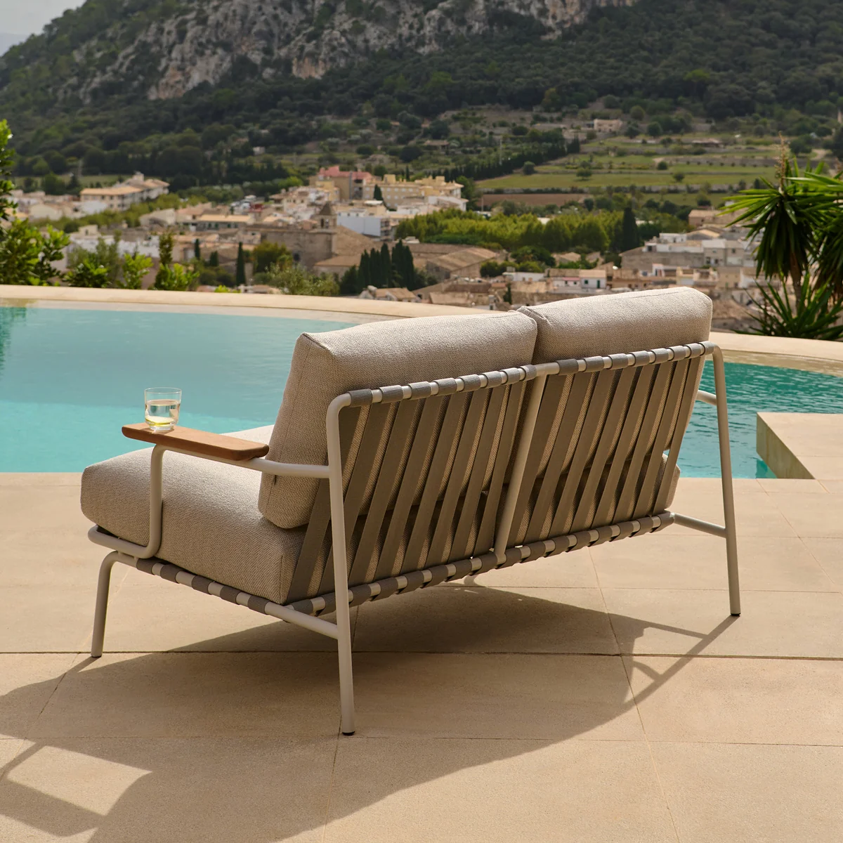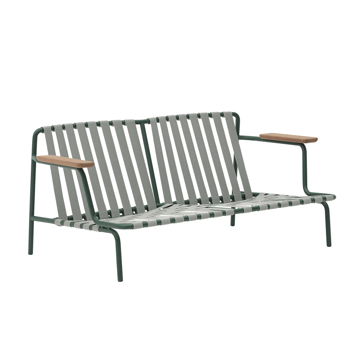 De 2-zitsbank Settle Outdoor combineert modern Scandinavisch design met duurzaam comfort voor buitengebruik. De luchtige stalen constructie met zichtbare riemdetails geeft de bank een lichte, elegante uitstraling en zorgt tegelijkertijd voor stabiliteit en duurzaamheid.