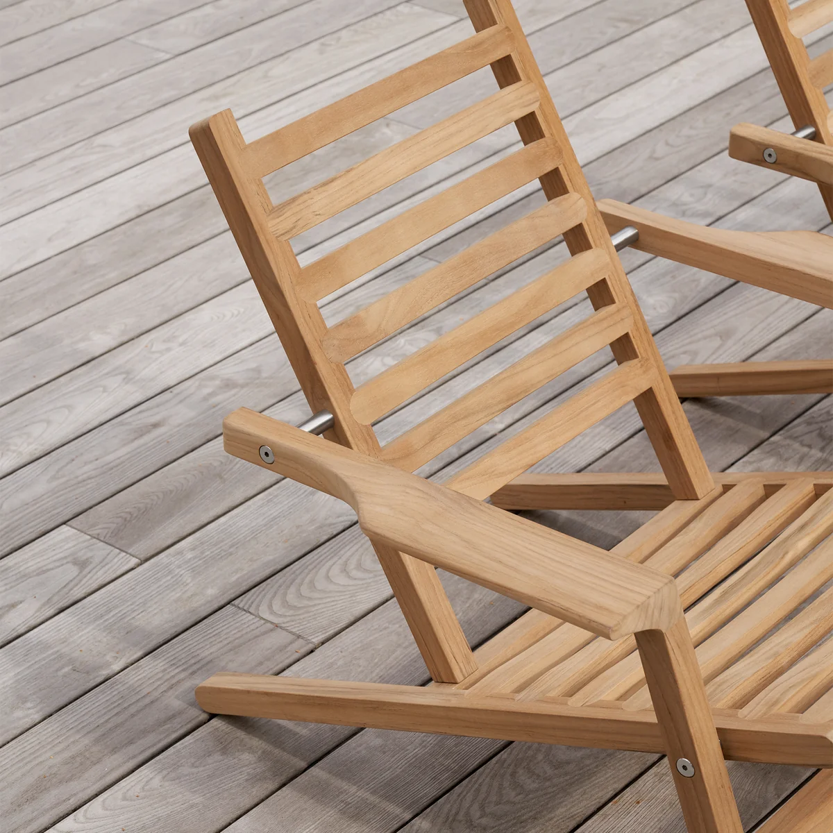 Minimalistische ligstoel met armleuningen van teakhout