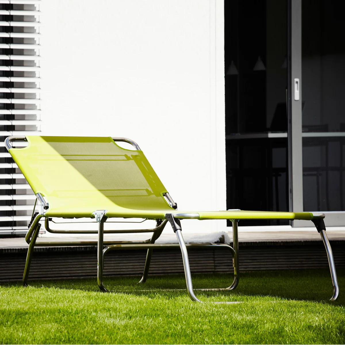 De rugleuning is in vier standen verstelbaar, zodat de rugleuning altijd in de gewenste positie staat. De grotere uitvoering van de Amigo zonnebank is ook zeer stabiel op zijn drie poten. Het frame is gemaakt van aluminium - dat ook bestand is tegen corrosie en gemakkelijk te reinigen is.