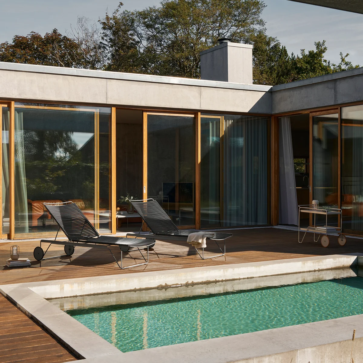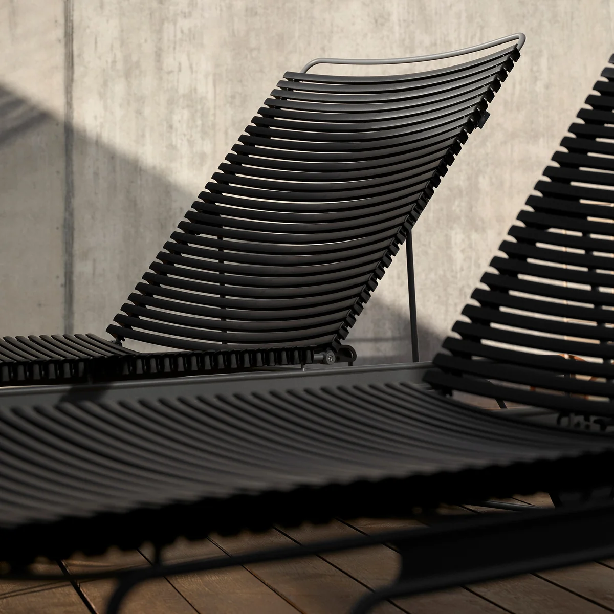 De verstelbare chaise longue CLICK staat voor individueel comfort en duidelijk Scandinavisch design. Dankzij de verstelbare rugleuning kan de ligpositie moeiteloos worden aangepast - van rechtop zitten met een boek tot achterover leunen en ontspannen in de zon. De brede latten bieden een evenwichtige combinatie van flexibiliteit en ondersteuning en zorgen voor een hoog comfortniveau zonder dat er extra kussens nodig zijn. Voor nog meer comfort kan de chaise longue optioneel worden aangevuld met een bijpassend HOUE loungekussen . Strakke lijnen, duurzame materialen en een functioneel ontwerp maken het de ideale metgezel voor rustige momenten in de buitenlucht.