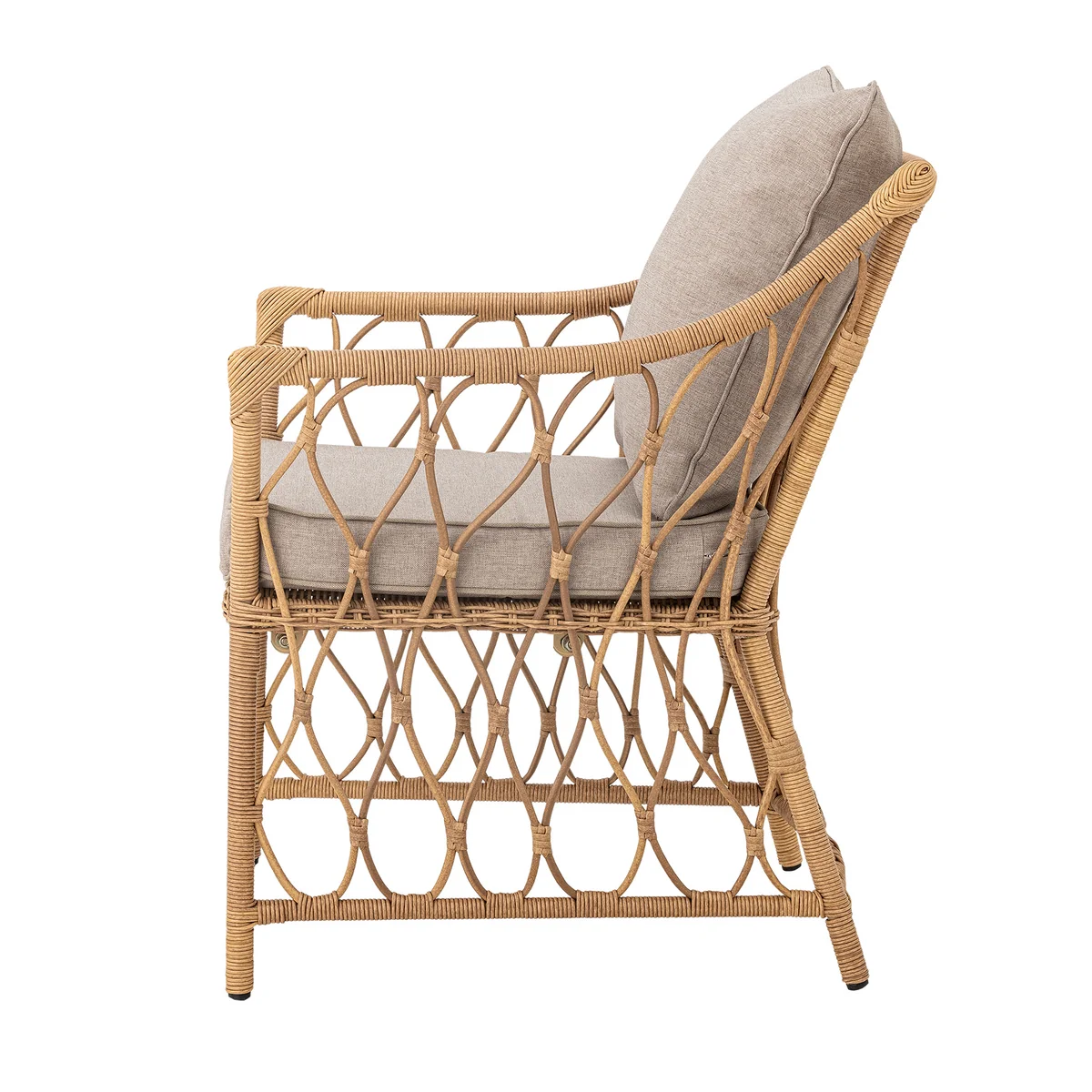 De Belluce loungestoel van Bloomingville biedt ontspannende uren in de tuin of op het terras. Het geweven poly-rattan geeft de stoel een natuurlijke uitstraling, terwijl de kussens met linnen textuur voor extra comfort zorgen. Bijzonder praktisch: het bijpassende krukje kan onder de stoel worden opgeborgen om ruimte te besparen.