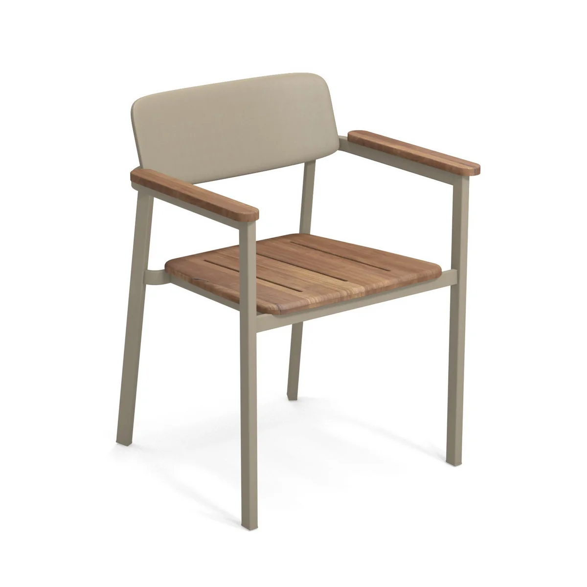 De Outdoor fauteuil van de Italiaanse fabrikant Emu maakt deel uit van de moderne Shine collectie van de ontwerper Arik Levy. De stoel is gemaakt van aluminium en inspireert met zijn lichte en luchtige gevoel van ideaal comfort. De stoelen zijn stapelbaar en blinken uit door hun interessante combinatie van een aluminium frame en een zitting en armleuningen van 100% FSC-gecertificeerd teakhout.