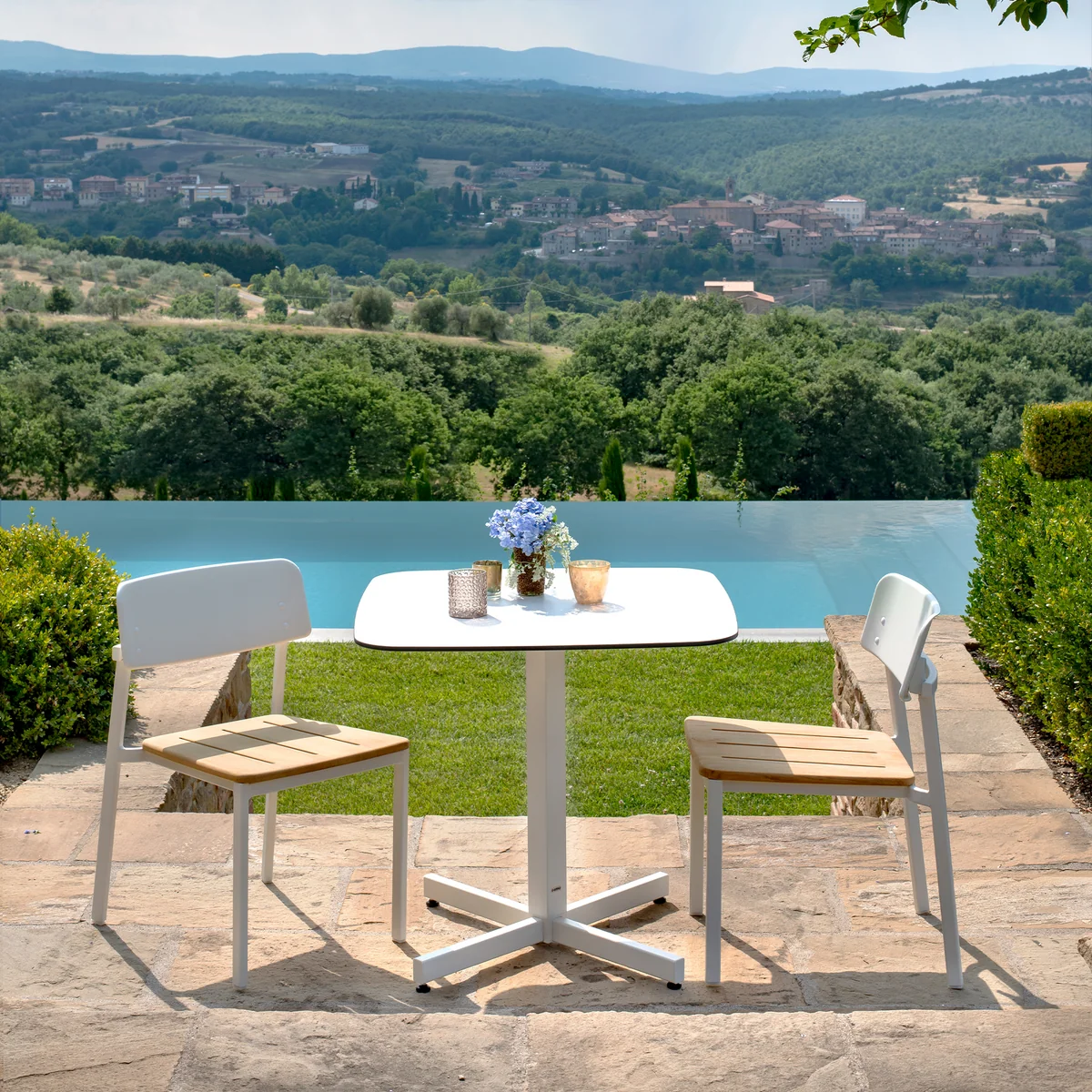 De Outdoor stoel van de Italiaanse fabrikant Emu maakt deel uit van de moderne Shine collectie van de ontwerper Arik Levy. De stoel is gemaakt van aluminium en inspireert met zijn lichte en luchtige gevoel van ideaal comfort. De stoelen zijn stapelbaar en blinken uit door hun interessante combinatie van een aluminium frame en een zitting van 100% FSC-gecertificeerd teakhout.