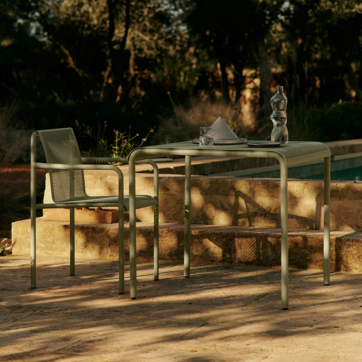 De Dapple tuinstoel van Ferm Living is geïnspireerd op de schoonheid van zonlicht dat door de bladeren schijnt en buiten een rustgevende sfeer creëert. Deze stoel is gemaakt van gegalvaniseerd staal met poedercoating en biedt zowel duurzaamheid als bescherming tegen de elementen, terwijl de elegante esthetiek behouden blijft. Uitgerust met comfortabele armleuningen biedt hij extra comfort en vult hij je buitenruimte op een eenvoudige maar effectieve manier aan.