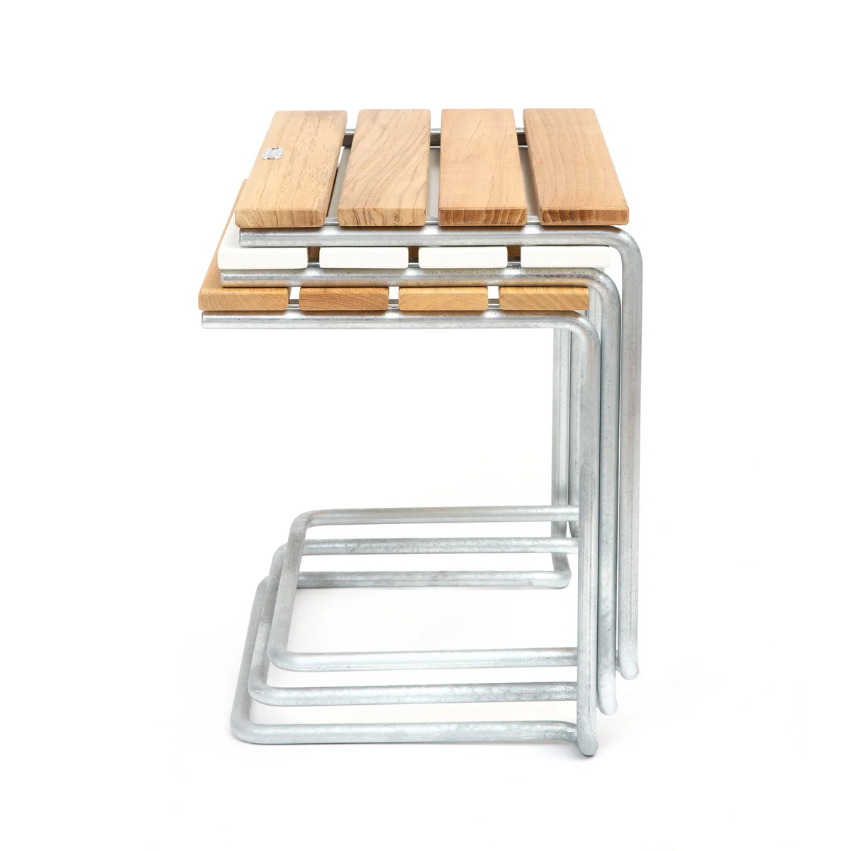 Met de A3 outdoor hocker van het Zweedse bedrijf Grythyttan kun je genieten van pure ontspanning door je voeten omhoog te leggen en achterover te leunen - het onmiskenbare comfort van Grythyttan is nog nooit zo aangenaam geweest. Vooral in combinatie met de A3 ligstoel is de voetenbank geweldig voor buitengebruik. Indien gewenst kunnen de ligstoelen gestapeld worden om ruimte te besparen in de tuin of op het terras.