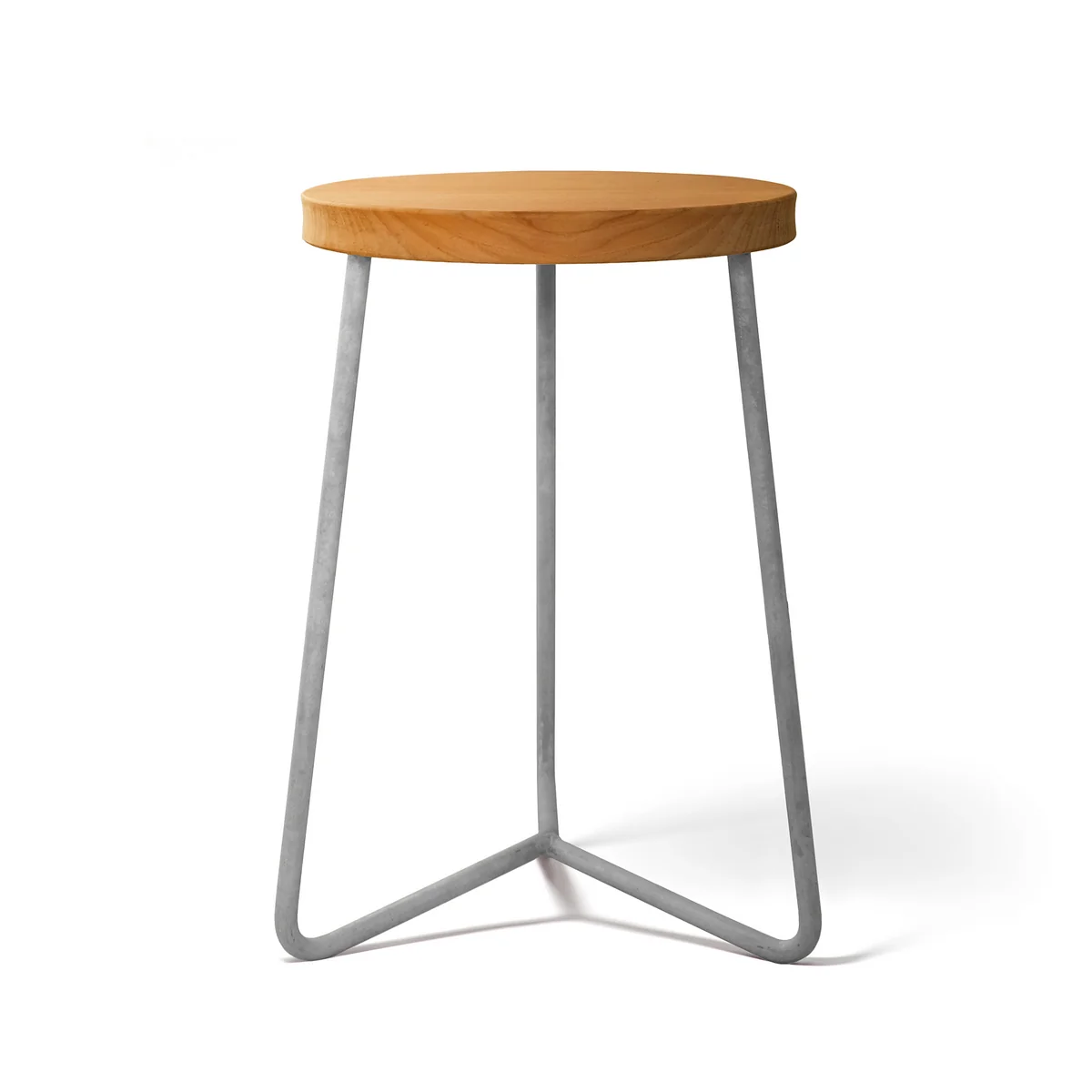De V1 45 tuinkruk van het Zweedse bedrijf Grythyttan. De traditionele kruk van de fabrikant is oorspronkelijk ontworpen voor werkplaatsen. Dankzij de robuuste constructie is hij bestand tegen zware slijtage en intensief gebruik. Met zijn drie poten van massief staal is de kruk extreem stabiel en kan hij bijna overal worden neergezet. De teakhouten zitting en thermisch verzinkte stalen poten maken deze duurzame kruk vrijwel onverwoestbaar, waardoor hij ideaal is voor zowel binnen als buiten.