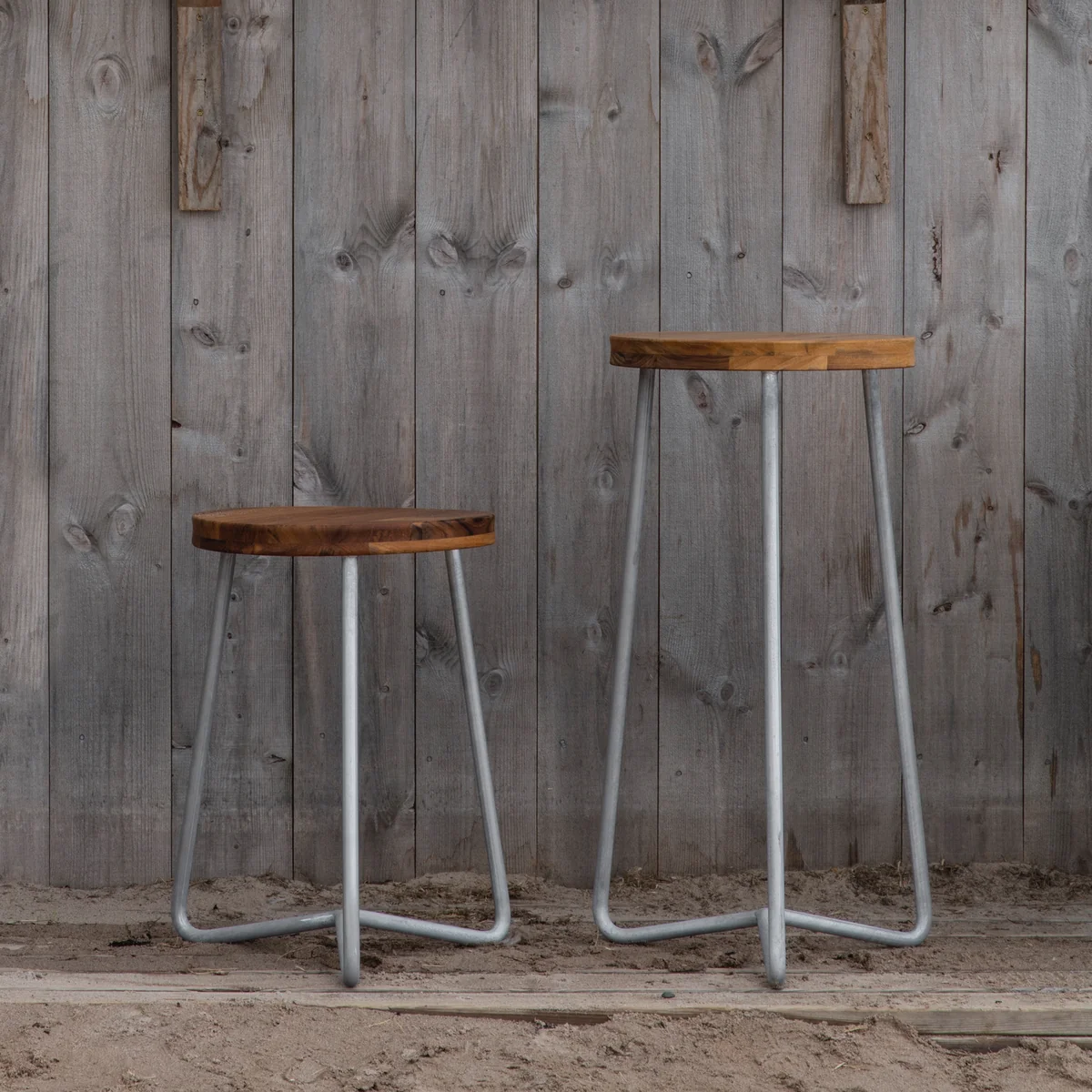 Outdoor barkruk van thermisch verzinkt staal en teakhout