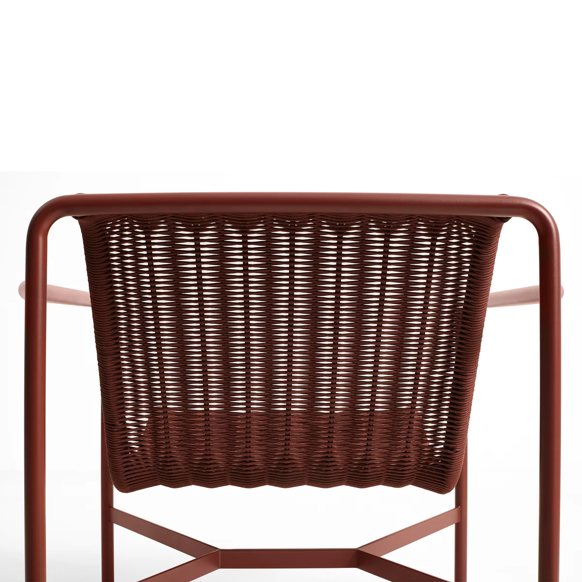 De Palissade Cord Dining Armchair door HAY & ontworpen door Ronan Erwan Bouroullec, combineert de karakteristieke, symmetrische geometrie van de Palissade collectie met een zachtere expressie. Het gepoedercoate stalen frame zorgt voor stabiliteit en duurzaamheid, terwijl de handgeweven zitting van polyester koord in bijpassende tinten comfort en duurzaamheid biedt. Dankzij het tijdloze ontwerp en het veelzijdige kleurenpalet past de fauteuil moeiteloos in zowel natuurlijke als stedelijke buitenruimtes - van cafés en restaurants tot tuinen, terrassen en balkons. Met zijn duidelijke designtaal en hoog zitcomfort is de fauteuil ideaal voor diverse buitensituaties. Palissade Cord Dining Armchair ideaal voor verschillende buitensituaties en voegt hij een stijlvolle finishing touch toe aan elk interieur.