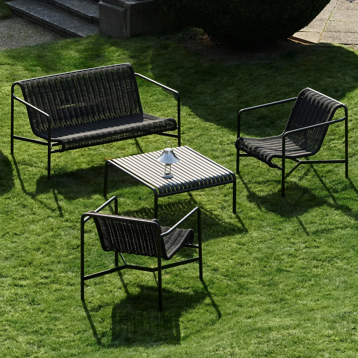 HAY De Palissade Cord Lounge Chair Low van combineert de karakteristieke, symmetrische geometrie van de Palissade collectie met een zachte, uitnodigende uitdrukking. Het gepoedercoate stalen frame zorgt voor stabiliteit en duurzaamheid, terwijl de handgeweven zitting van gerecycled polyester in bijpassende tint een comfortabele en slijtvaste zitting biedt. Met zijn tijdloze esthetiek en veelzijdige kleurenpalet past de fauteuil moeiteloos in zowel natuurlijke als stedelijke buitenruimtes - van cafés en restaurants tot tuinen, terrassen en balkons. Het resultaat is een buitenmeubel dat modern design combineert met een hoog zitcomfort en een stijlvolle toets geeft aan een grote verscheidenheid aan buitenruimtes.