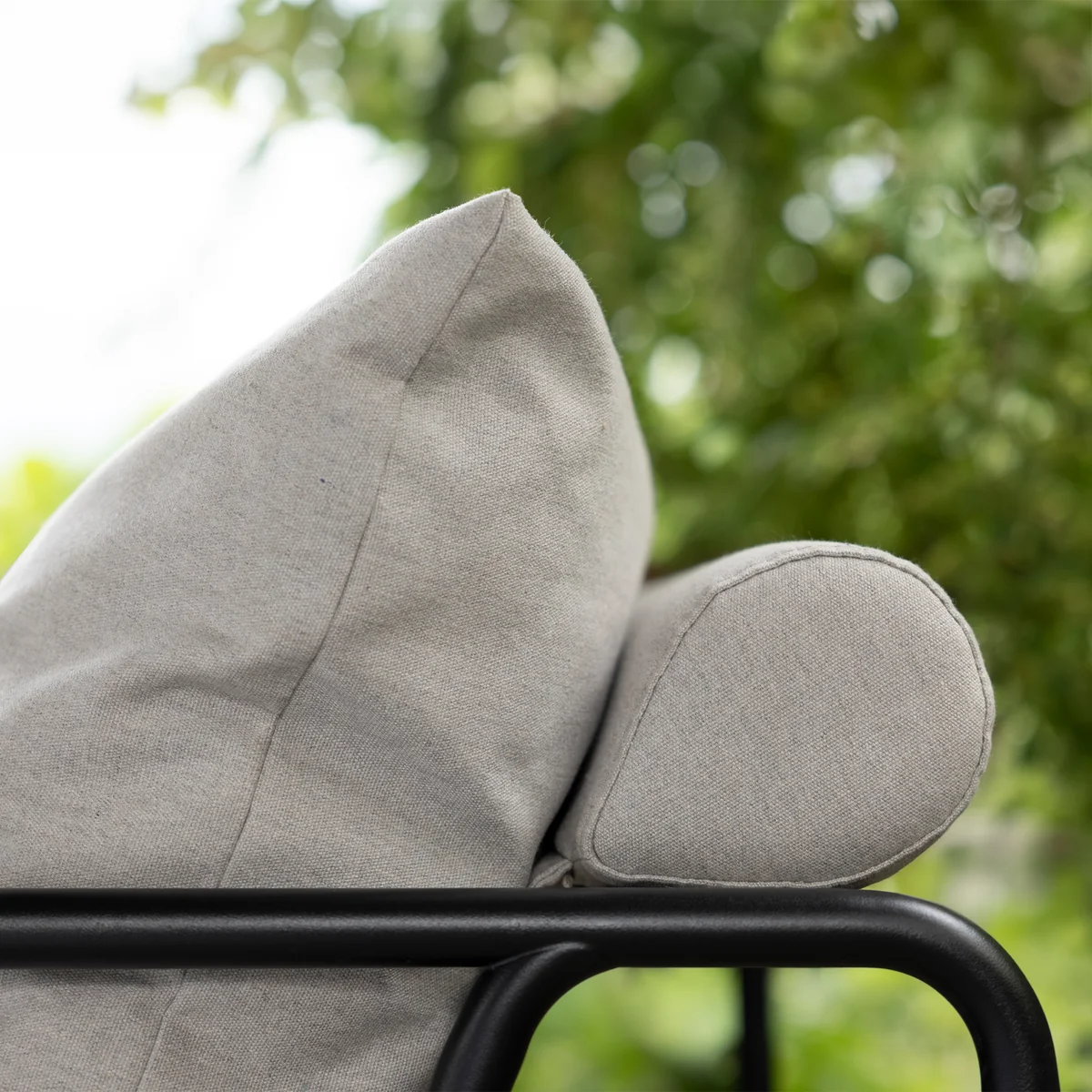 Het minimalistische ontwerp geeft de stoel een luchtige uitstraling zonder afbreuk te doen aan het comfort. Tegelijkertijd zorgen praktische details zoals geïntegreerde handgrepen op de kussens voor eenvoudige bediening en flexibel gebruik.