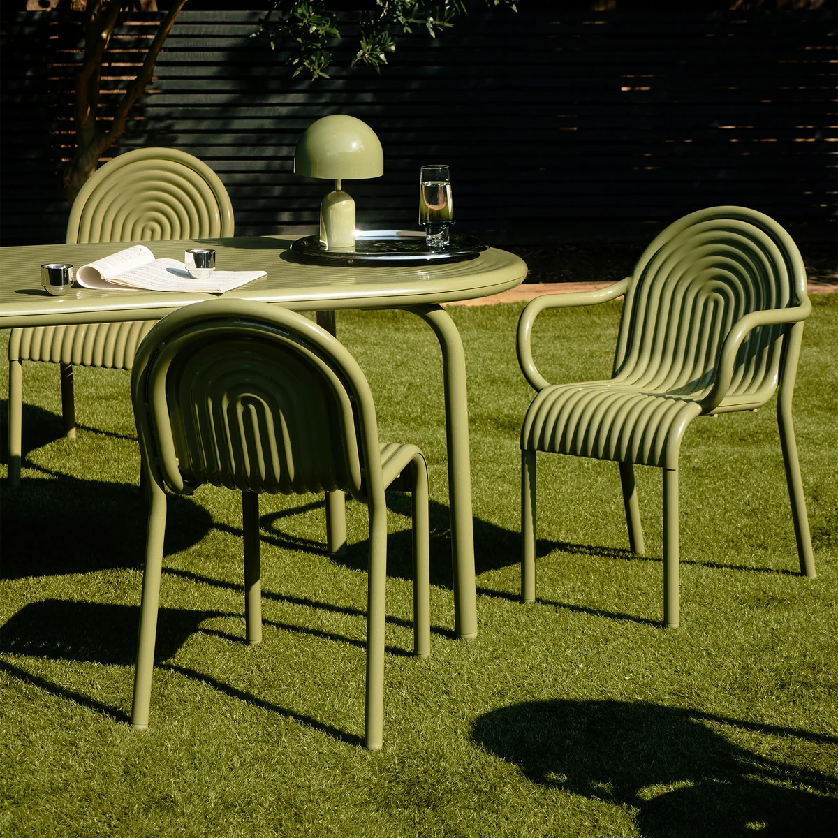 De Groove tuinstoel van Tom Dixon is een opvallend voorbeeld van modern outdoordesign en maakt deel uit van de eerste outdoorcollectie van de gerenommeerde ontwerper. Hij is geïnspireerd op de 2021 HYDRO aluminium stoel en maakt indruk met opvallende lijnen in Art Deco-stijl die hem een karakteristieke, geometrische uitdrukking geven.