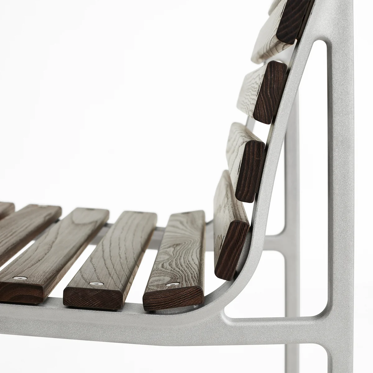De Traverse HAY outdoor stoel van, ontworpen door Erwan Bouroullec, maakt indruk met zijn tijdloze ontwerp en robuuste constructie. Het gegoten aluminium frame en de lattenzitting van warmtebehandeld essenhout geven de stoel stabiliteit en een natuurlijke, aantrekkelijke uitstraling. Na verloop van tijd krijgt het hout een subtiele patina, wat het karakter van het meubel nog meer benadrukt. Dankzij de evenwichtige proporties en comfortabele zitting is de stoel geschikt voor gebruik in zowel privétuinen als openbare buitenruimtes. Hij kan gemakkelijk worden gecombineerd met andere stukken uit de Traverse -collectie, waardoor een uitnodigende sfeer ontstaat om samen buiten tijd door te brengen.