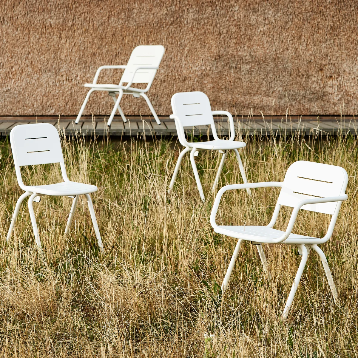 Met de langgerekte groeven in de zitting en rugleuning laat Ray de zonnestralen door en creëert zo prachtige schaduwen op de onderliggende vloer. De elegante groeven geven het ontwerp een zekere lichtheid, waardoor de wind erdoorheen kan gaan en de regen snel kan wegvloeien. Verkrijgbaar in verschillende kleuren, de stapelbare stoel past goed in elke omgeving.