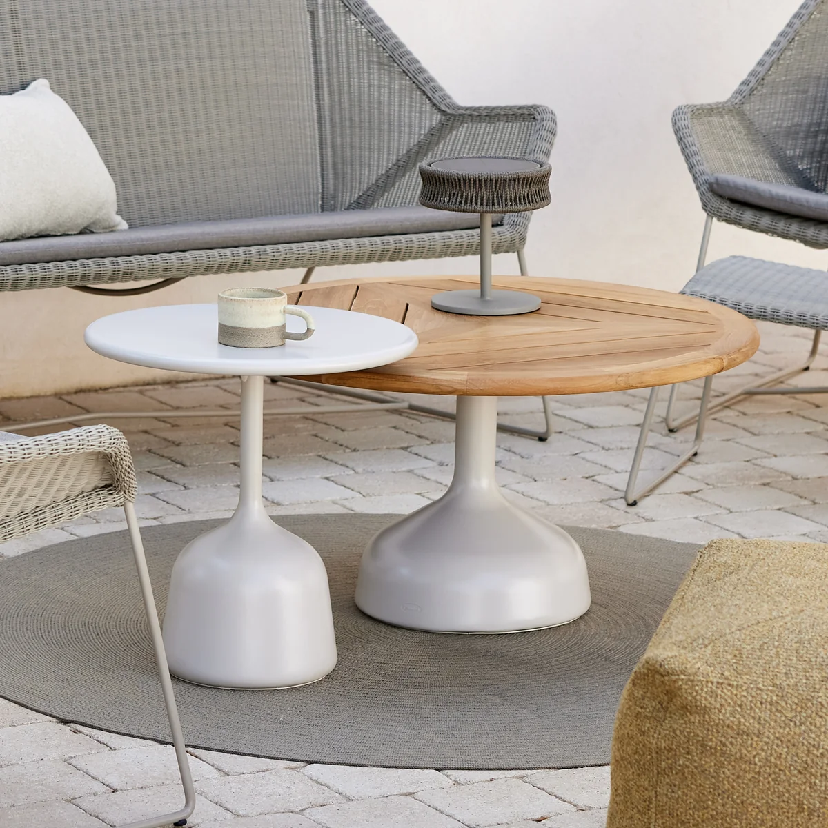 De Glaze outdoor salontafel van Cane-line combineert esthetiek en functionaliteit in perfecte harmonie. Deze tafel is gemaakt van gepoedercoat aluminium en biedt niet alleen een stevige constructie die bestand is tegen de elementen, maar ook een tijdloze elegantie die bij elke buiteninrichting past. Met zijn gladde oppervlak en strakke lijnen past de Glaze naadloos in verschillende buitenomgevingen, of het nu op het terras, balkon of in de tuin is. Het royale tafelblad biedt voldoende ruimte voor drankjes, hapjes of decoraties en nodigt uit om gezellige uurtjes buiten door te brengen.