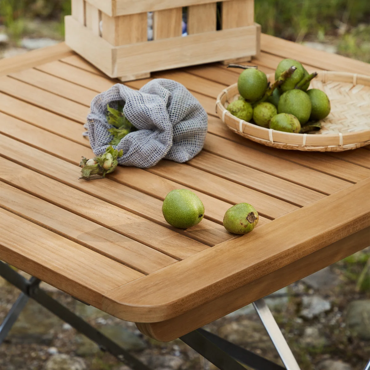 De klaptafel is gemaakt van duurzaam teakhout en roestvrij staal en kan moeiteloos worden ingeklapt. Lilleø De klaptafel kan moeiteloos worden ingeklapt en opgeborgen om ruimte te besparen. Hij maakt deel uit van de Lilleø serie, een populaire collectie tuin- en balkonmeubelen van FDB Møbler , die ook is ontworpen door Thomas E. Alken. Met zijn geraffineerde ontwerp is de tafel perfect voor balkons, patio's of kleine cafés.