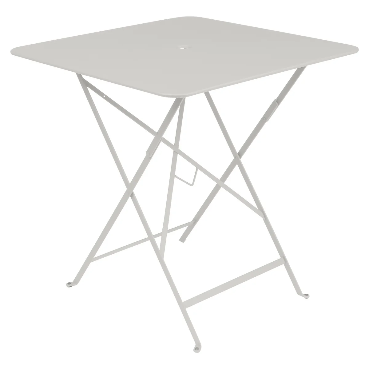 Fermob De tuintafel van 71 x 71 cm heeft een kleine uitsparing in het midden van het tafelblad die dient als praktische parasolhouder. Parasols met een standaard van max. Ø 41 mm kunnen in het tafelblad worden geplaatst.
