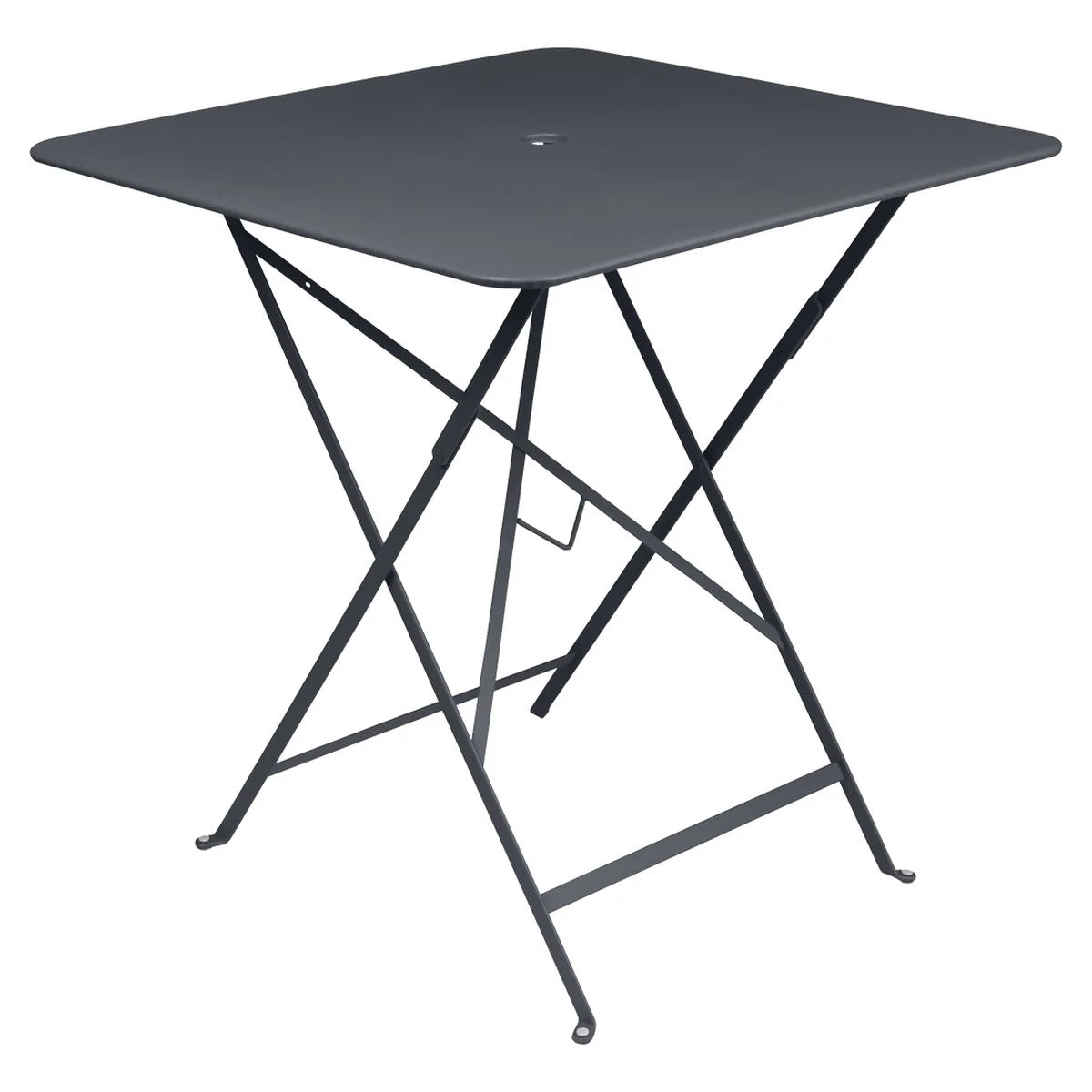 Fermob De tuintafel van 71 x 71 cm heeft een kleine uitsparing in het midden van het tafelblad die dient als praktische parasolhouder. Parasols met een standaard van max. Ø 41 mm kunnen in het tafelblad worden geplaatst.