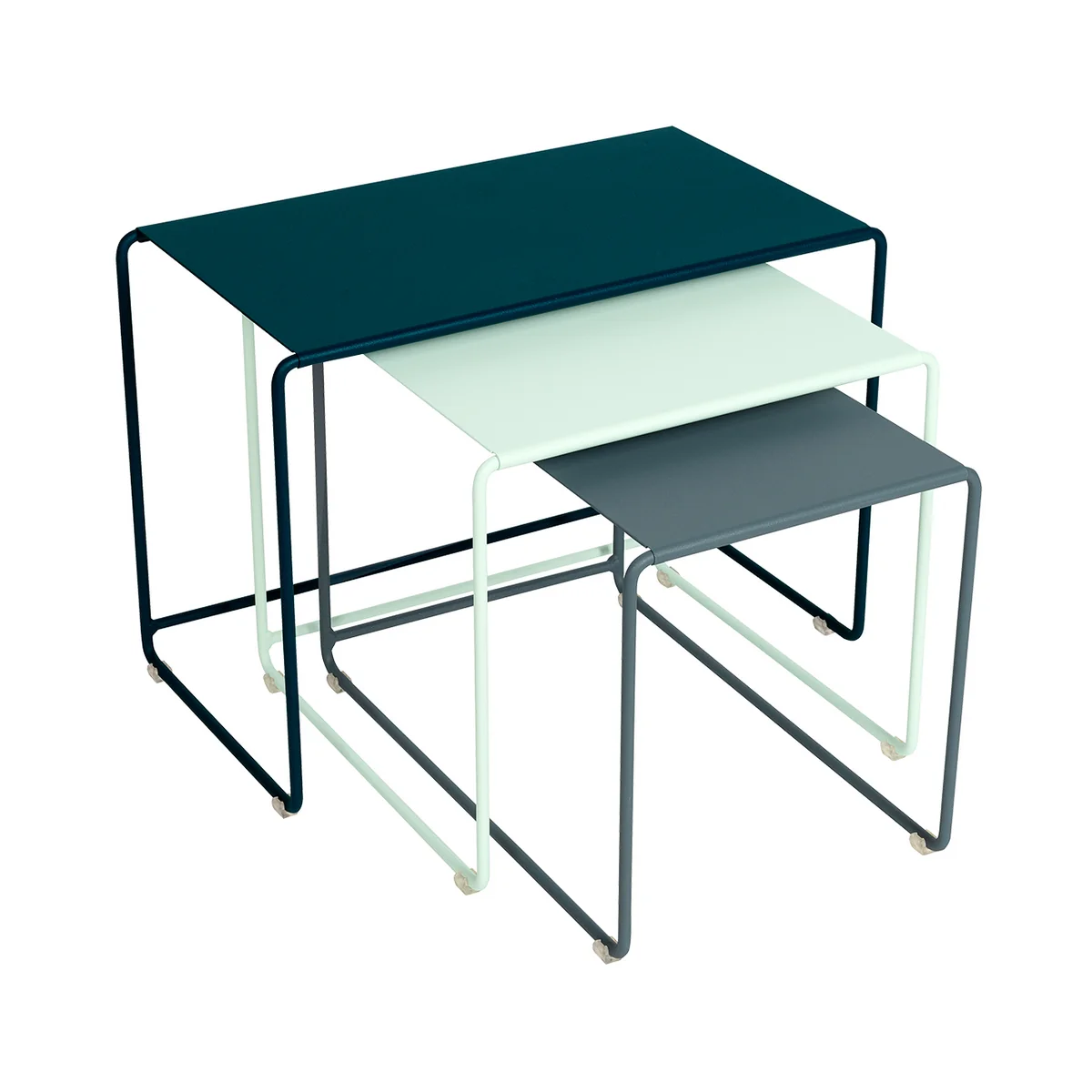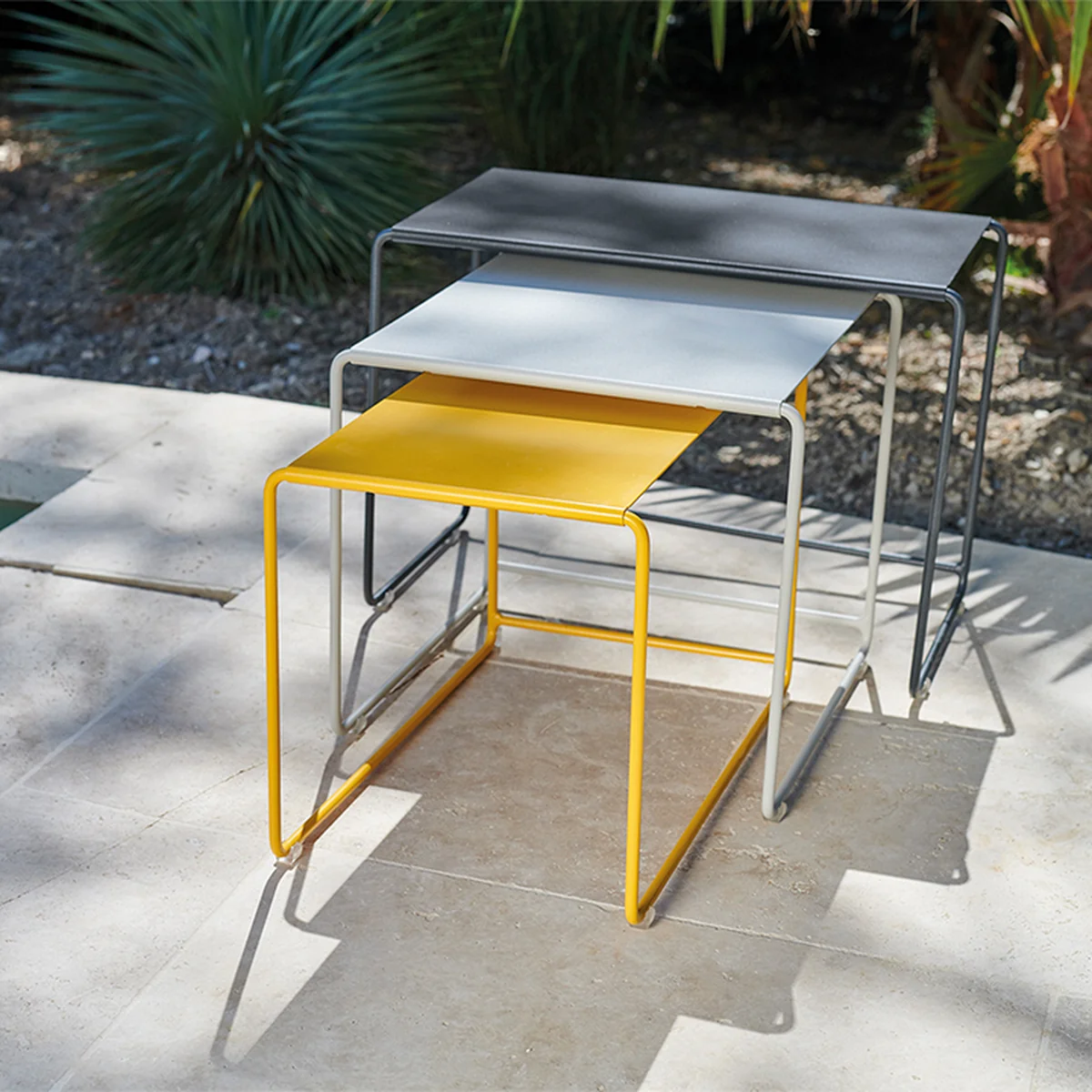 Oulala is een driedelige zittafelset van de Franse fabrikant Fernmob. Hij inspireert met zijn kleurrijke variaties in antraciet / kleigrijs / honing, opaalgroen / gletsjermunt / citroensorbet en rozemarijn / cactus / chili. De tafels zijn gemaakt van gepoedercoat staal en zijn binnen de set verkrijgbaar in de maten 55 x 40 x 30 cm, 50,5 x 34 x 30 cm en 40 x 40 x 37 cm. De Oulala set heeft een gewicht van 11 kg en is vervaardigd in Europa.