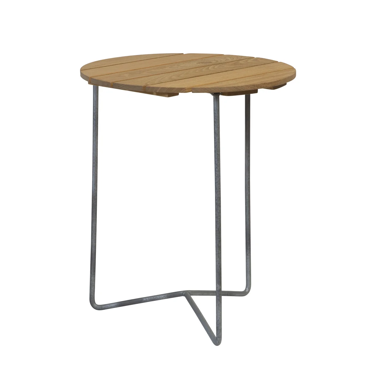 De 6B 60 tuineettafel van het Zweedse bedrijf Grythyttan. Met zijn compacte diameter van slechts 60 cm is de kleinste tafel uit de klassieke serie uiterst flexibel in gebruik. Hij heeft een gegalvaniseerd onderstel en is verkrijgbaar met houten elementen.