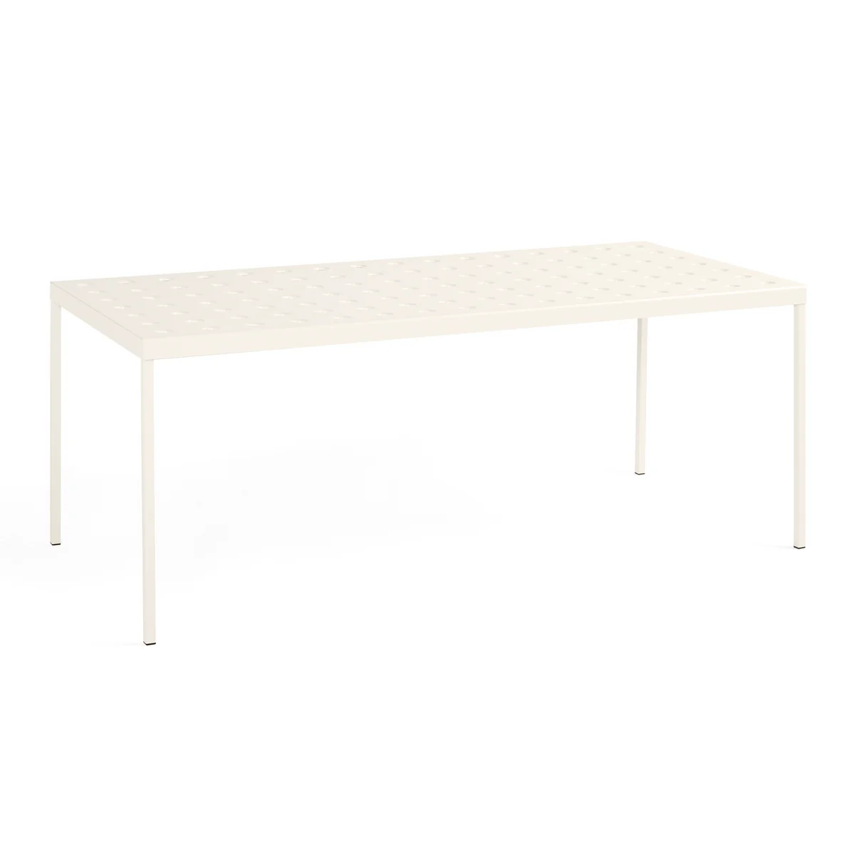 De Balcony eettafel van Ronan en Erwan Bouroullec voor HAY is een elegante eettafel voor buitengebruik. Het eenvoudige, rechthoekige ontwerp krijgt een nonchalant tintje door de slanke poten. De talrijke gaten in het tafelblad geven de constructie stabiliteit, waardoor tegelijkertijd een bijzondere expressie ontstaat. Balcony is gemaakt van gepoedercoat staal en heeft een coating die optimale weerstand en duurzaamheid garandeert. Dit maakt de eettafel ideaal voor gebruik buitenshuis.