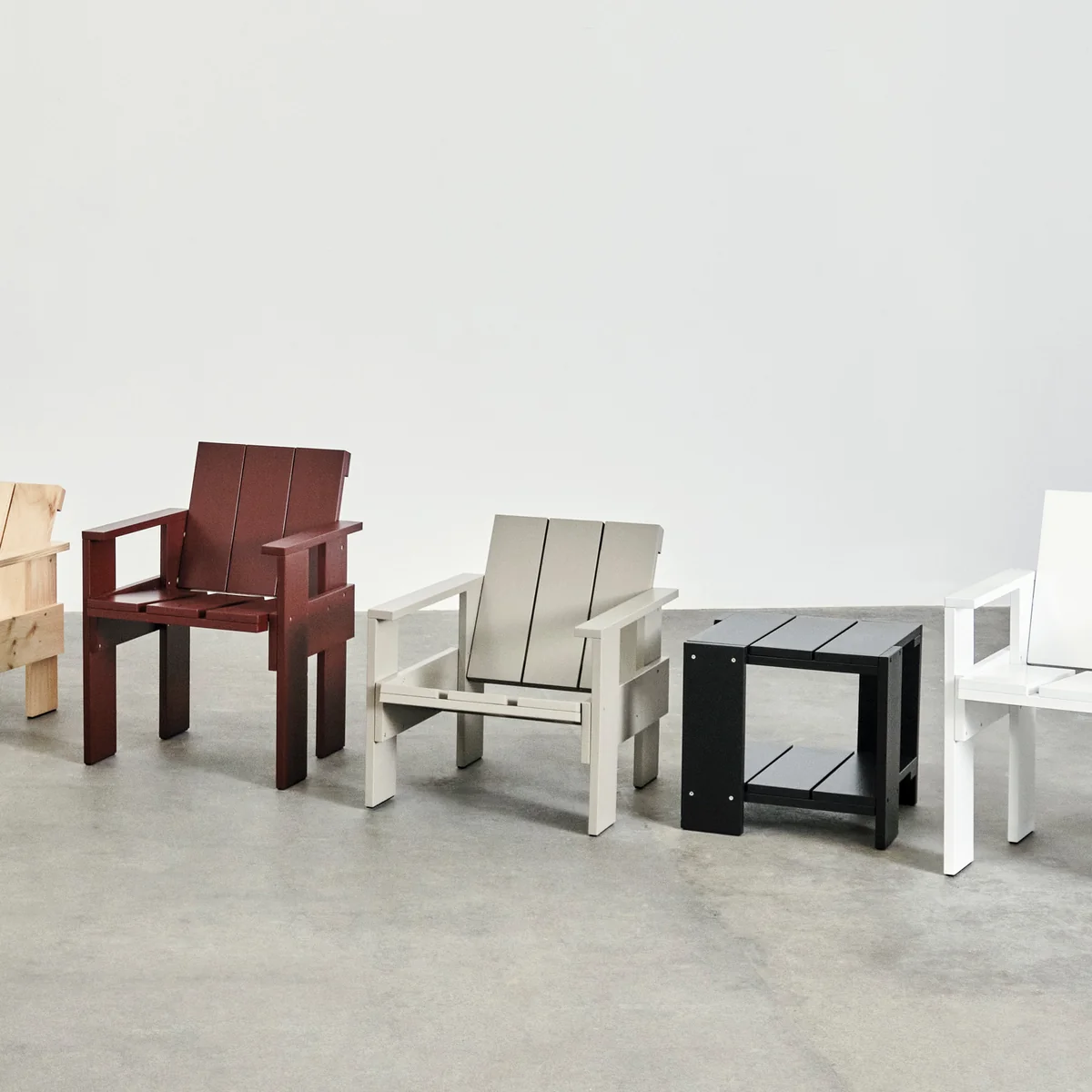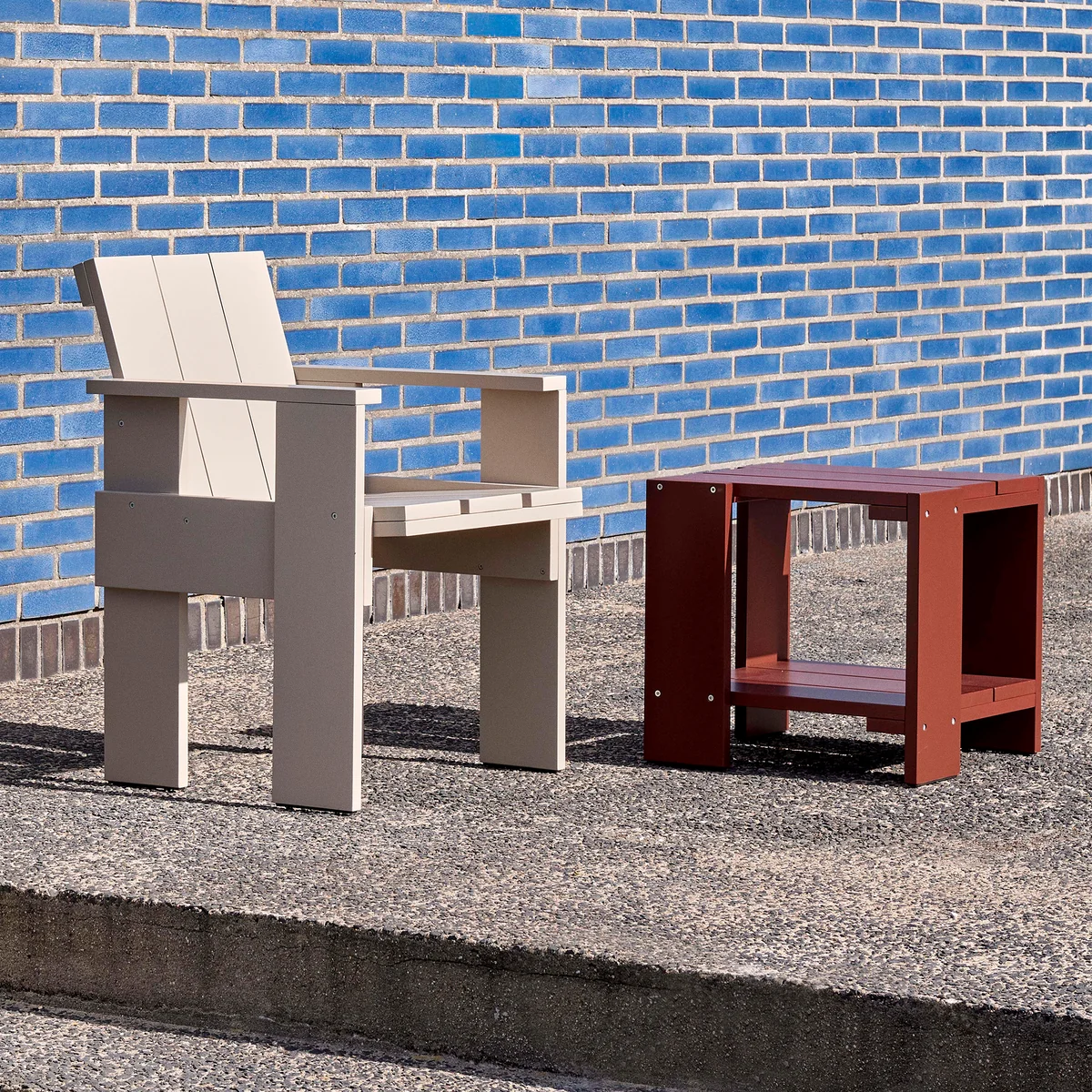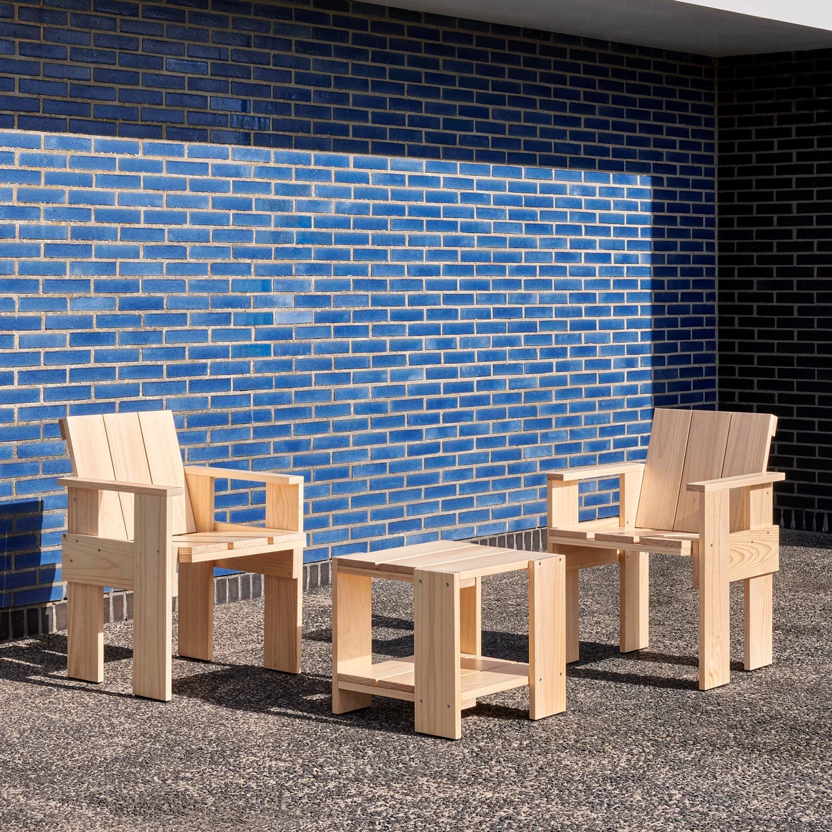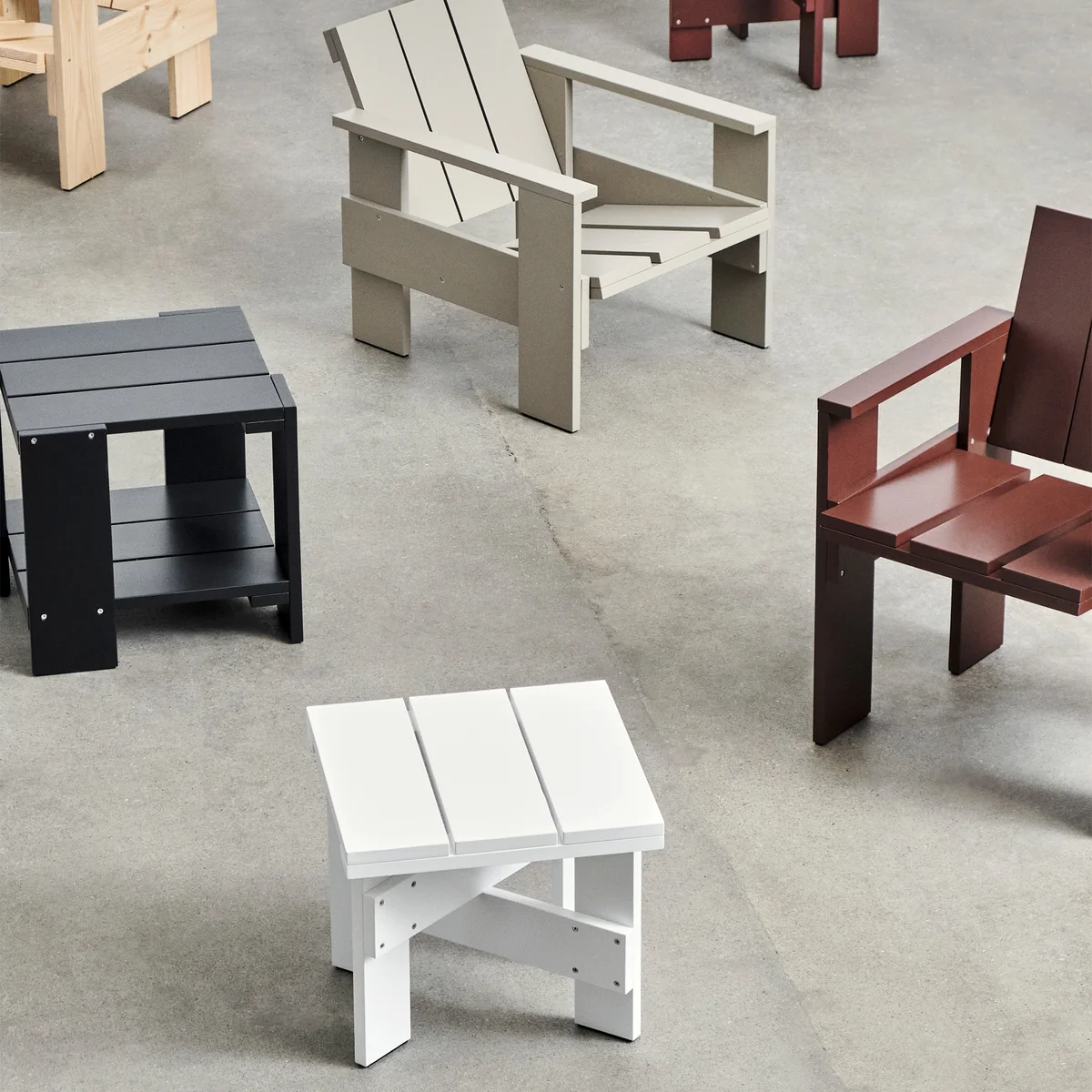 De Crate HAY bijzettafel van is een van de klassiekers die opnieuw is uitgebracht. De Crate collectie van de Nederlandse architect en ontwerper Gerrit Rietveld werd gecreëerd in 1934. Het doel was om overtollige houten kisten te gebruiken voor transport. De Crate bijzettafel is geproduceerd met een sterke focus op het originele ontwerp en heeft dezelfde extreem nauwkeurig uitgebalanceerde proporties. De transparante constructie maakt een geoptimaliseerd montageproces mogelijk. De lage tafelpoten, het vierkante tafelblad en de diagonale dwarsverbindingen geven de tafel zijn eenvoud. Crate De loungestoel is gemaakt van massief dennenhout en kan zowel binnen als buiten worden geplaatst dankzij de lak op waterbasis. Verkrijgbaar in verschillende kleuren.