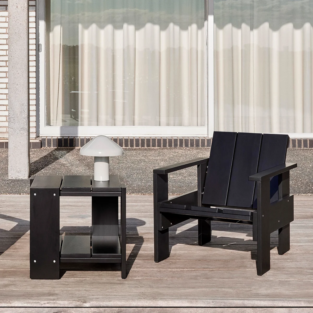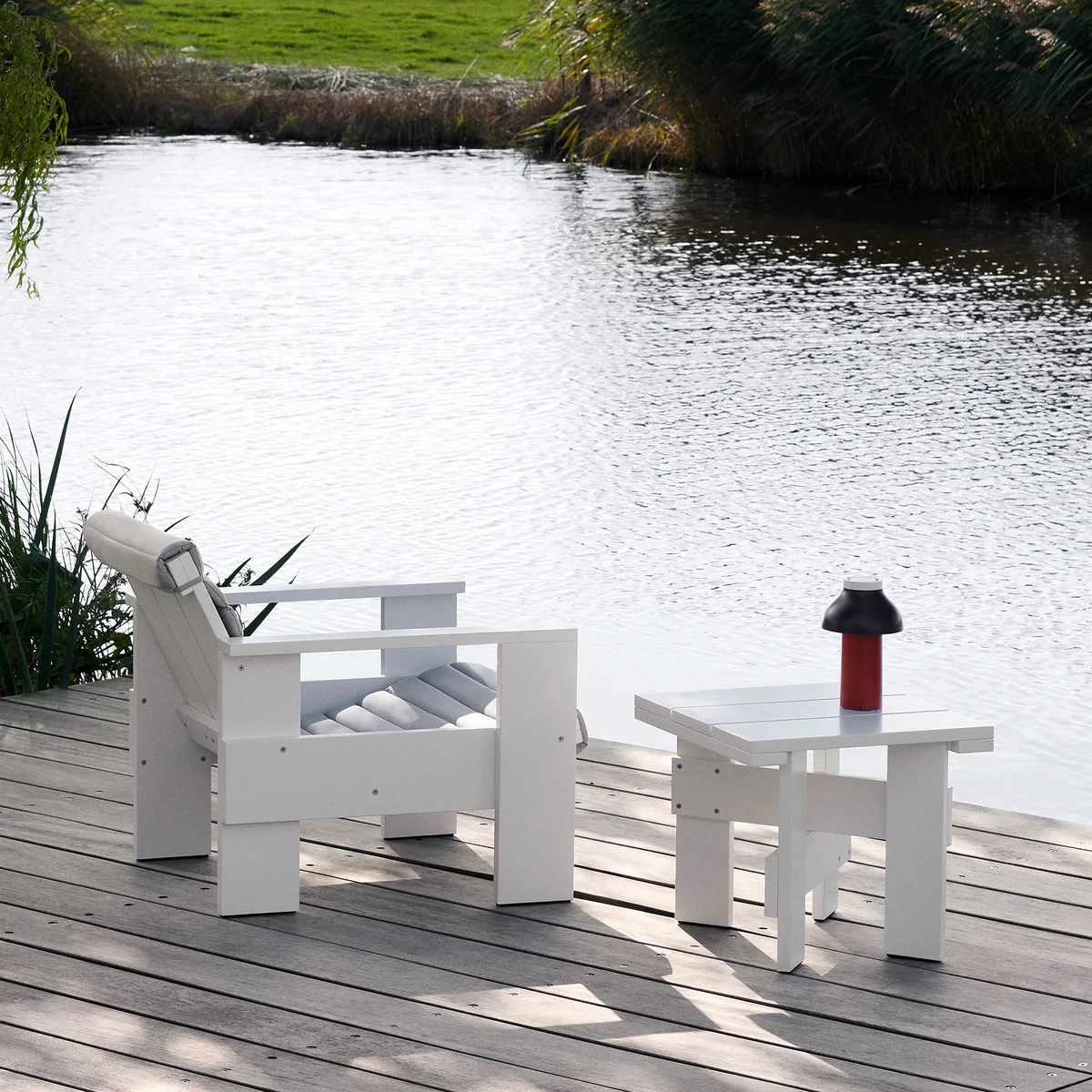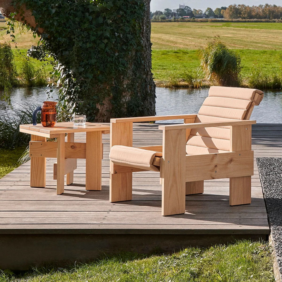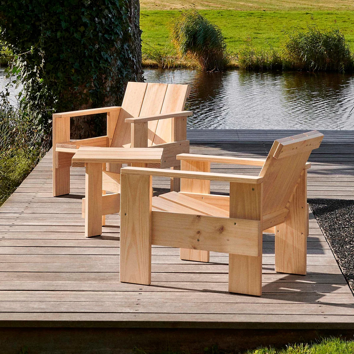 De Crate HAY bijzettafel van is een van de klassiekers die opnieuw is uitgebracht. De Crate collectie van de Nederlandse architect en ontwerper Gerrit Rietveld werd gecreëerd in 1934. Het doel was om overtollige houten kisten te gebruiken voor transport. De Crate bijzettafel is geproduceerd met een sterke focus op het originele ontwerp en heeft dezelfde extreem nauwkeurig uitgebalanceerde proporties. De transparante constructie maakt een geoptimaliseerd montageproces mogelijk. De lage tafelpoten, het vierkante tafelblad en de diagonale dwarsverbindingen geven de tafel zijn eenvoud. Crate De loungestoel is gemaakt van massief dennenhout en kan zowel binnen als buiten worden geplaatst dankzij de lak op waterbasis. Verkrijgbaar in verschillende kleuren.