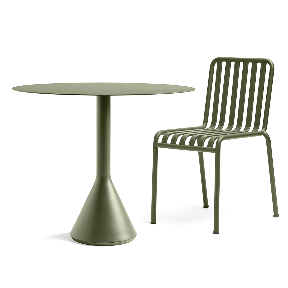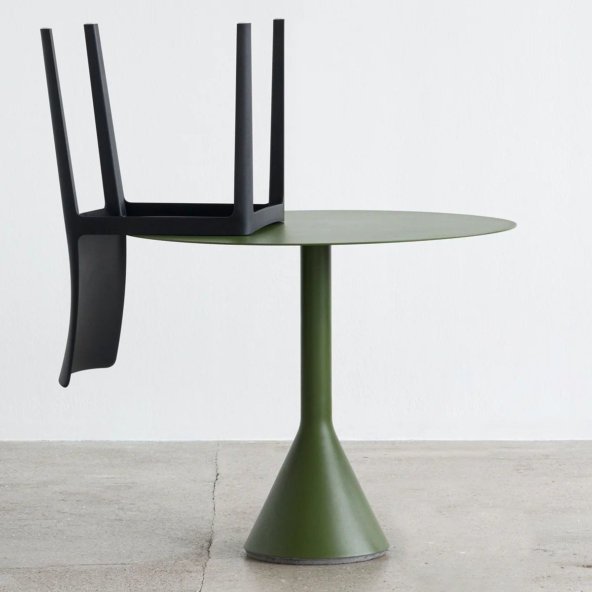 HAY Als aanvulling op de populaire Palissade-serie van, is nu een ronde tuintafel genaamd Cone aan de collectie toegevoegd. De tafel wordt gekenmerkt door zijn kegelvormige basis die gestabiliseerd is met beton. Toch is de tafel zeker niet lomp. & Samen met het ultradunne stalen tafelblad creëert het een nogal grafische designtaal, die ook terugkomt in de rest van de serie ontworpen door Ronan Erwan Bouroullec.