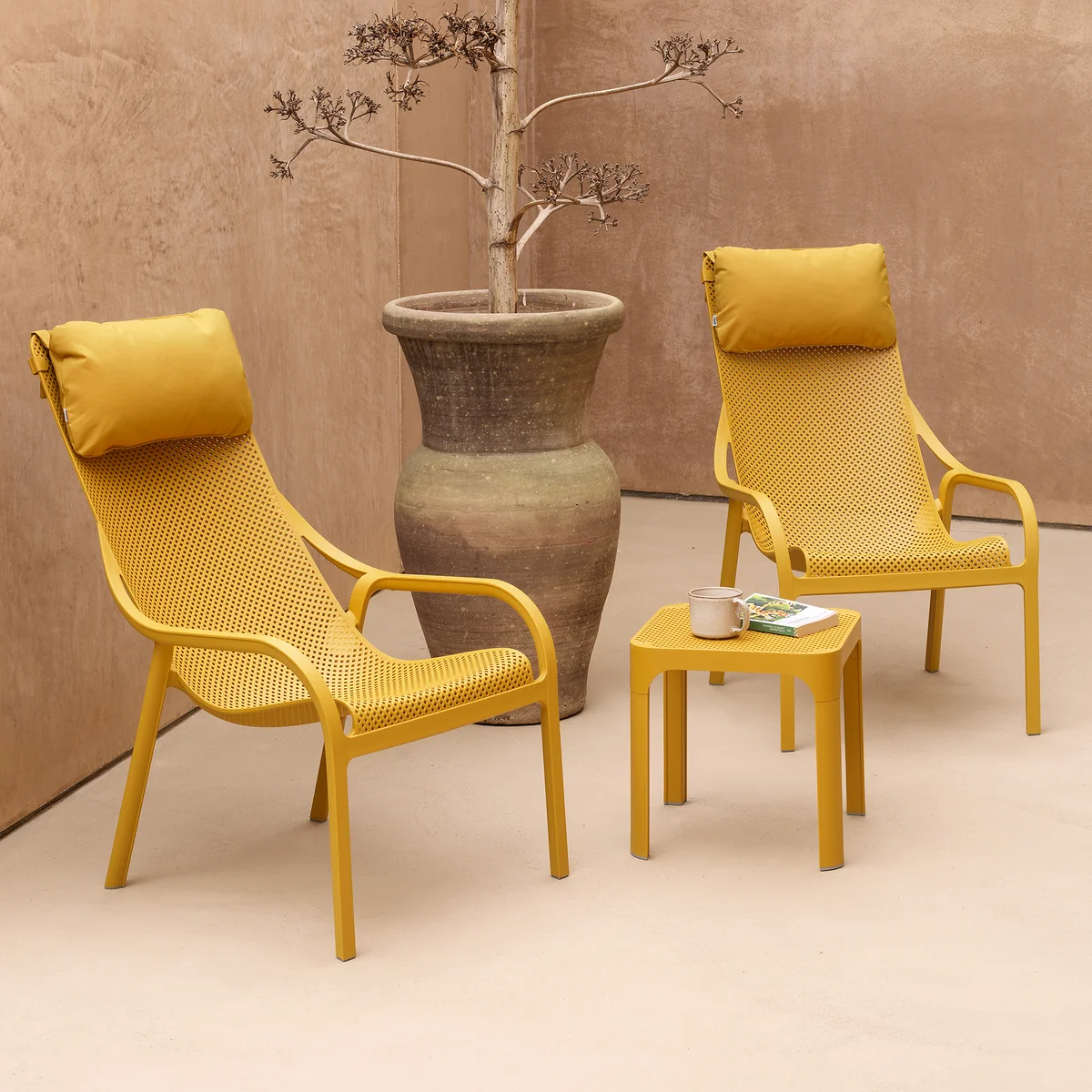 De Net bijzettafel 40 is een veelzijdige, compacte tafel die functionaliteit en modern design effectief combineert. Met zijn slanke ontwerp en praktische opbergoppervlak is het ideaal als aanvulling op een bank, fauteuil of ligstoel - of het nu in de woonkamer, op het balkon of buiten is.