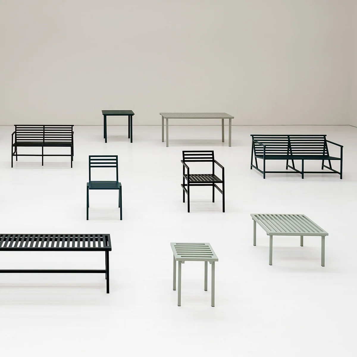 Elk artikel van de serie heeft een individueel ontwerp. Het materiaal, de kleur en de verhoudingen van de aluminium extrusie verenigen de gehele collectie. De basis van de '19 Outdoor' serie is het ontwerpproject '19 Chairs' - 19 stoelen werden gemaakt in 19 dagen, geleverd op 19 locaties, bewerkt door 19 creatieven en dit tijdens de COVID-19 fase. Het doel was een reactie te creëren ten gunste van Age UK & Resourcing Racial Justice, met betrekking tot de schade van de COVID-19 beperkingen binnen de artistieke scene.