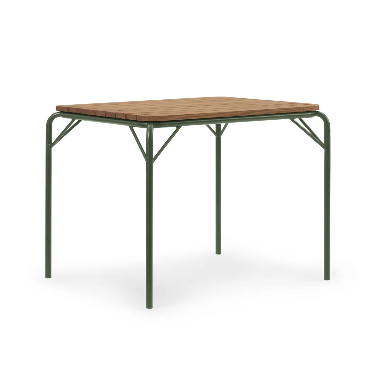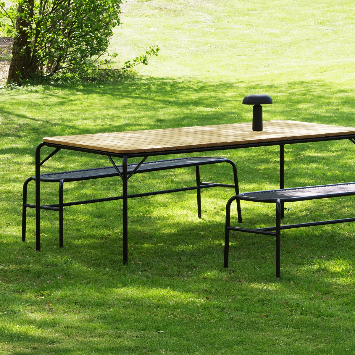 Normann Copenhagen De Vig buitentafel van combineert robuuste materialen met een tijdloos ontwerp, waardoor hij ideaal is voor buitengebruik. Het tafelblad van duurzaam robiniahout maakt indruk met zijn natuurlijke uitstraling en hoge weerbestendigheid, terwijl het gepoedercoate stalen frame verkrijgbaar is in verschillende kleuren en een moderne, elegante touch toevoegt.