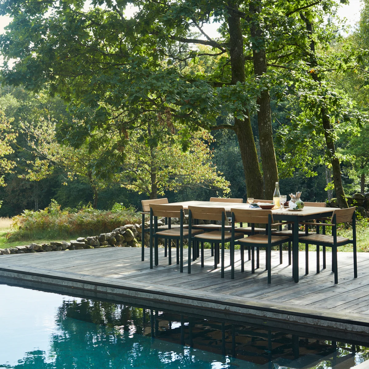 De Pelagus tafel van Skagerak is ontworpen door de Zweedse Note Design Studio voor gezelligheid en comfort en maakt indruk met zijn moderne uitdrukking. Als onderdeel van de Pelagus collectie is de tafel ontworpen om er opengevouwen net zo goed uit te zien als dichtgevouwen. Het teakhouten tafelblad heeft afgeronde hoeken waar het het gepoedercoate aluminium frame ontmoet. Indien nodig kan de tafel worden verlengd met verlengbladen. Hij biedt comfortabel plaats aan zes tot acht personen en kan met de verlengbladen worden uitgebreid tot nog eens vier personen.