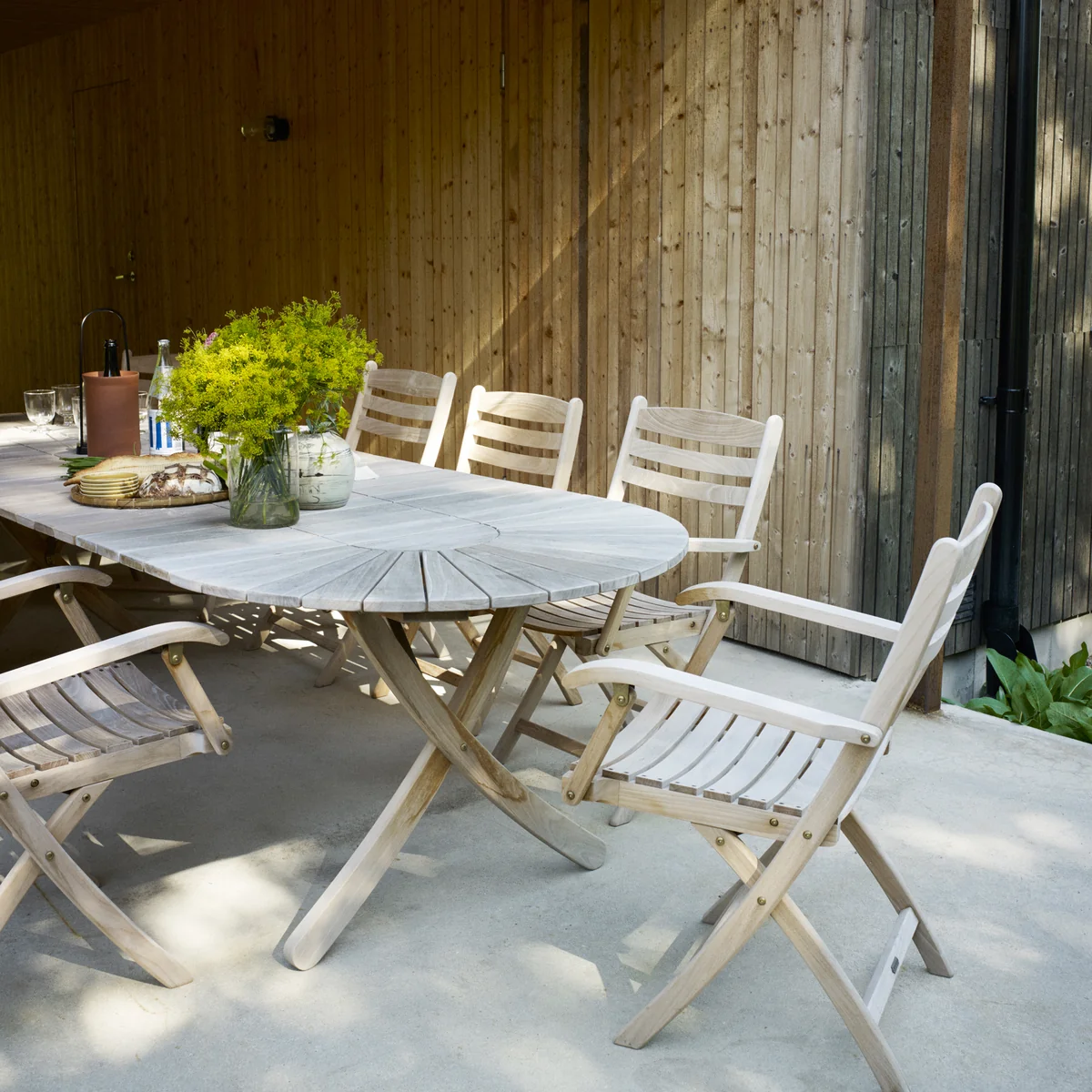 Gemaakt van teakhout, is de Selandia serie van Skagerak bijzonder goed bestand tegen rot en schimmelbederf en is daarom ideaal voor buitengebruik. Om de schoonheid van het hout te behouden, is het aan te raden om de teakhouten tuintafel regelmatig te behandelen met meubelolie om patineren van het hout te voorkomen.