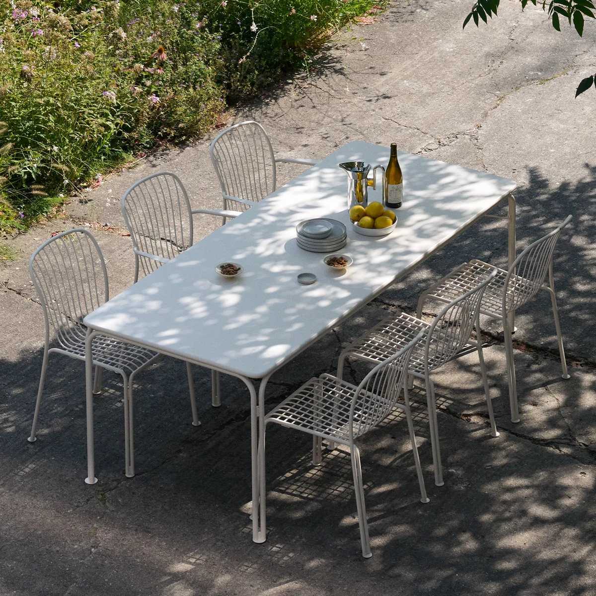 Thorvald De tuintafel van Space Copenhagen voor & Tradition combineert tijdloze elegantie met functionele robuustheid. De tafel is geïnspireerd op de neoklassieke esthetiek van beeldhouwer Bertel Thorvaldsen en maakt indruk met zijn heldere, geometrische vormen en luchtige silhouet. Het massieve tafelblad vormt een spannend contrast met het delicate stalen frame. Dankzij de hoogwaardige materialen en weerbestendige afwerking is de tafel perfect voor in de tuin, op het terras of in stijlvolle buitenruimtes.