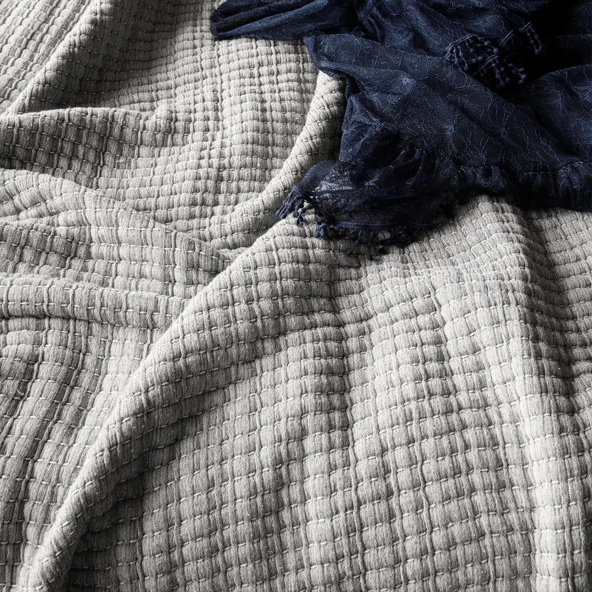 De deken meet 250 x 240 cm en is gemaakt van 100% gewatteerd katoen. De quilttechniek maakt de deken bijzonder zacht en dik en is verrassend licht. De deken kan in de wasmachine worden gewassen op 30 °C.