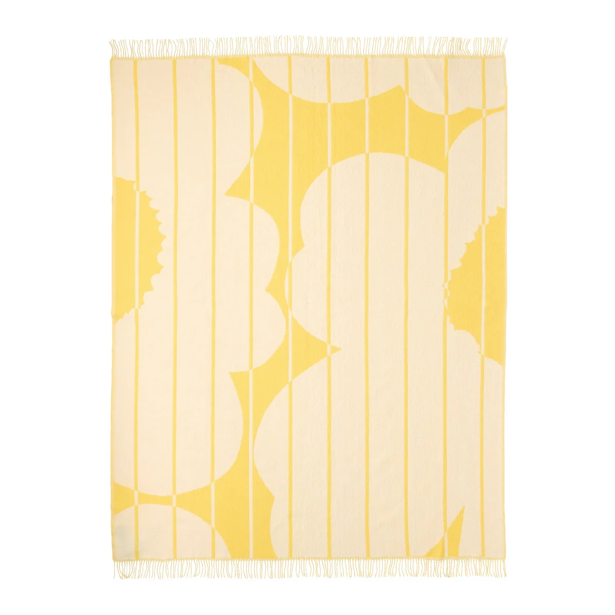 De Vesi Unikko wollen deken van Marimekko is gemaakt met de jacquard breitechniek en versierd met franjes aan de uiteinden. De kleuren van het patroon zijn aan de achterkant omgekeerd. Dit product herdenkt de 60e verjaardag van het Unikko-patroon en draagt met trots het jubileumlabel.