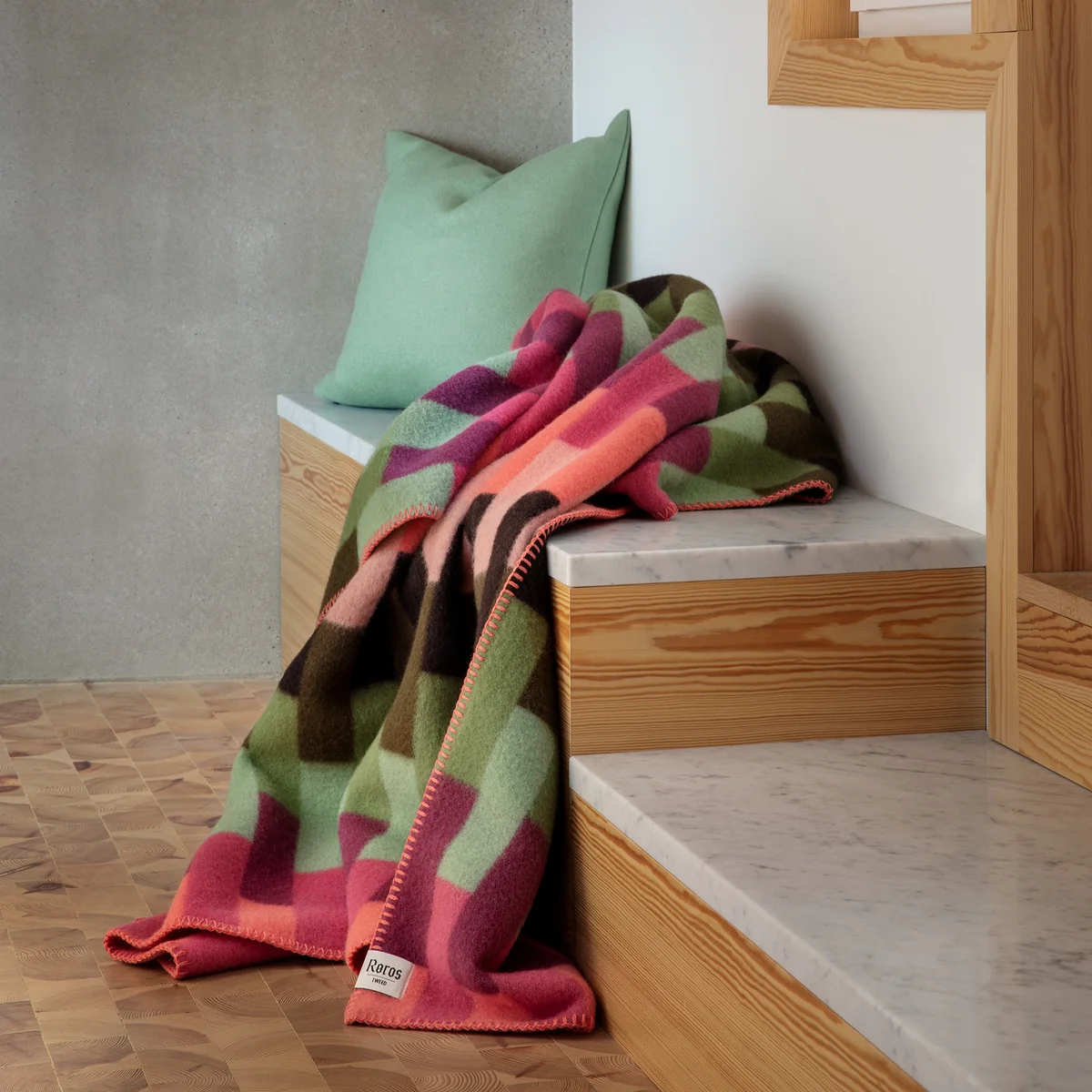 Het patroon van de Åsmund Bold deken is geïnspireerd door de Noorse kunstenaar en ontwerper Åsmund S. Lærdal. De combinatie van verschillende kleuren en patronen geeft de deken een uniek en artistiek karakter dat perfect past bij elk interieur.
