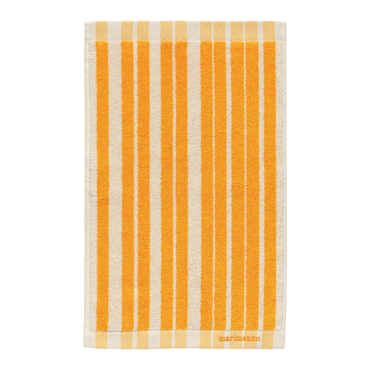 Het gastendoekje van Marimekko heeft het levendige Raide-patroon - een dynamische compositie van strepen van Annika Rimala, geïnspireerd op treinrails. Het is gemaakt van katoenen badstof van hoge kwaliteit en bestaat voor 65% uit biologisch katoen en voor 35% uit gerecycled katoen. Dit laatste is afkomstig van een gesloten productiecyclus waarbij textielresten van Marimekko productie worden hergebruikt voor nieuwe producten.