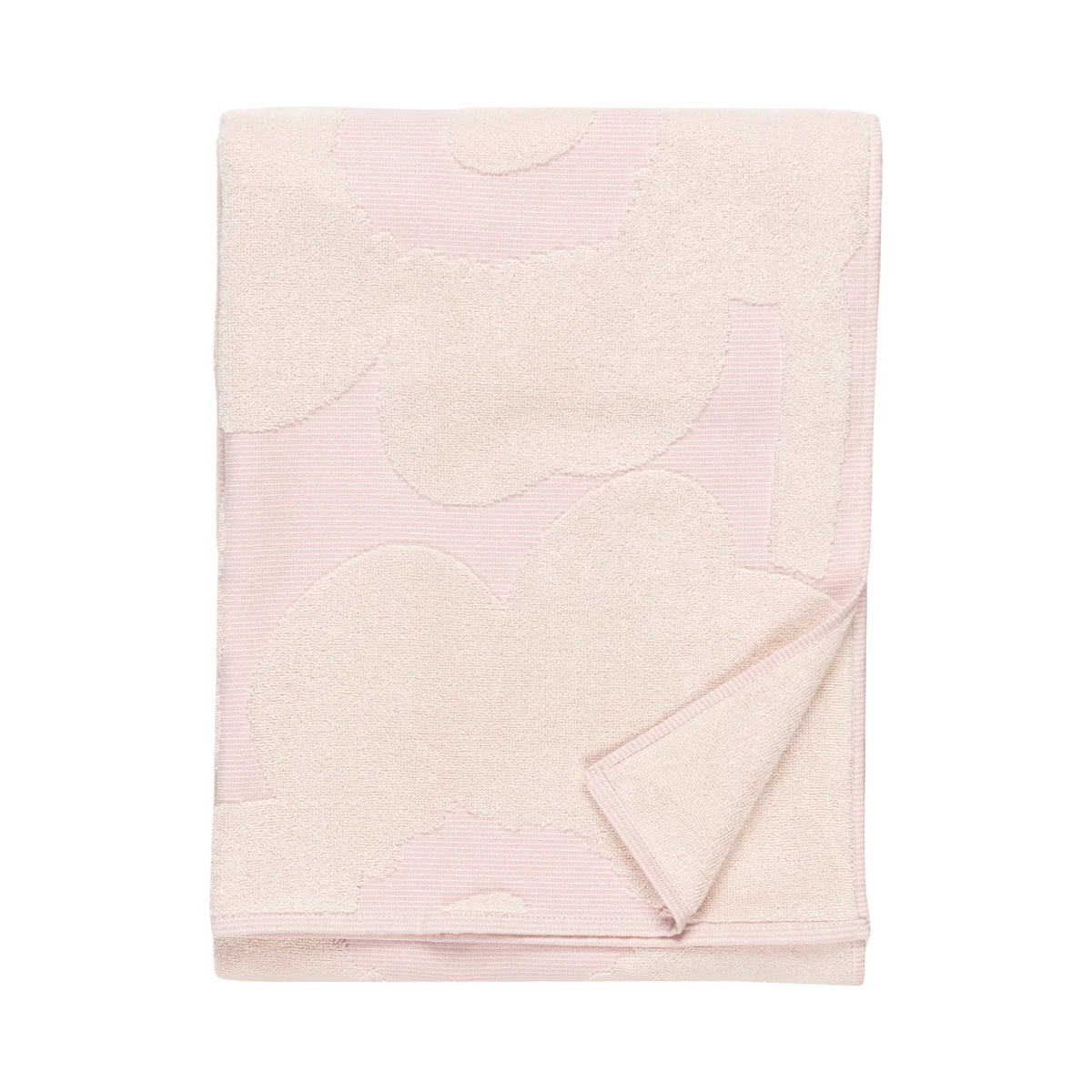De Unikko handdoekenset bestaat uit drie handdoeken van biologisch katoenen badstof. De set bestaat uit een badhanddoek (70 x 150 cm), een handdoek (50 x 70 cm) en een gastendoek (30 x 50 cm). De voorkant van de handdoeken is voorzien van het Unikko-patroon in reliëf, terwijl de achterkant glad en effen van kleur is.