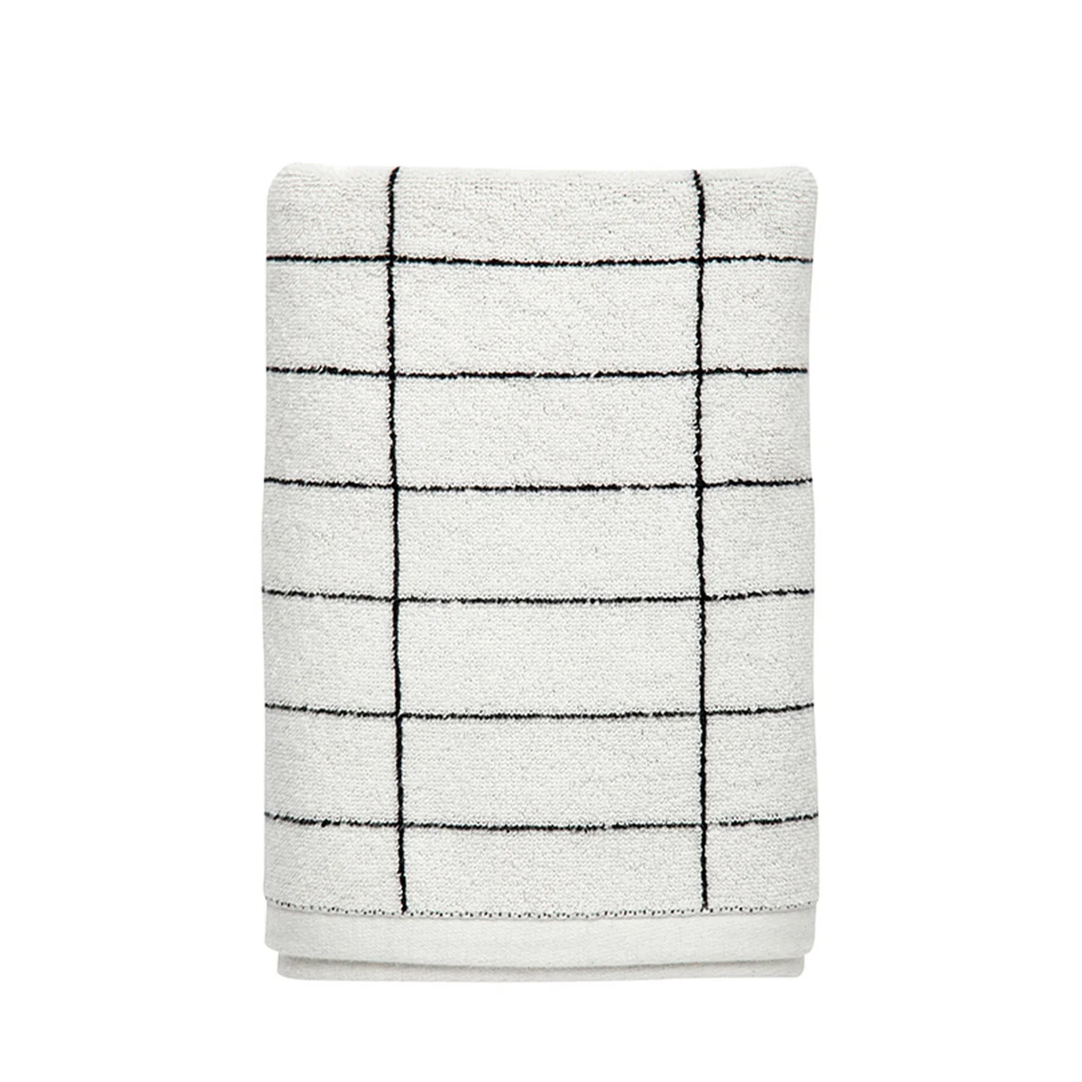 De Tile handdoek van Mette Ditmer overtuigt met zijn heldere, dunne lijnen. Het ontwerp van Ditmer doet denken aan het klassieke beeld van vloer- of wandtegels. Door zijn ongewone motief vindt de handdoek vooral in sobere badkamers een ideale thuis. Het product is gemaakt van 100% OEKO-TEX® gecertificeerd katoen, waardoor de handdoek ook na vele wasbeurten zacht blijft. De Tile handdoek kan op 60 graden gewassen worden.