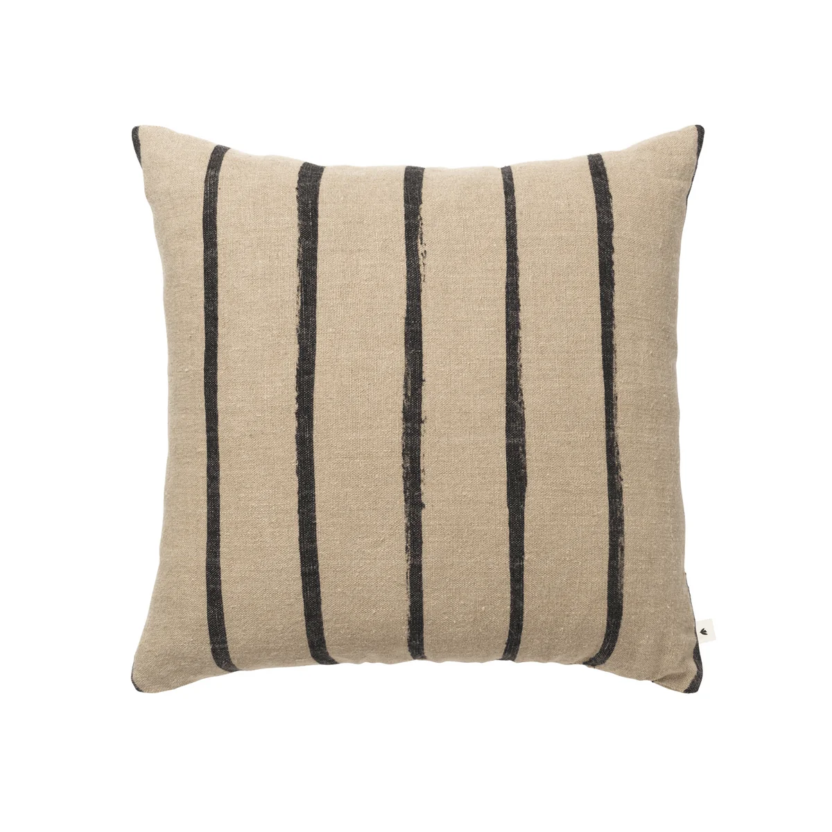 Het Oleo kussen is gemaakt van 100% gewassen linnen en heeft handgetekende patronen die tot leven komen door middel van een ingewikkeld zeefdrukproces. De kleur wordt door een fijne zeef gedrukt om de artistieke lijnen uitzonderlijk helder op de stof over te brengen. Deze delicate techniek geeft het kussen een subtiele, handgemaakte touch en combineert artisticiteit met expressief design.